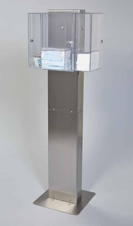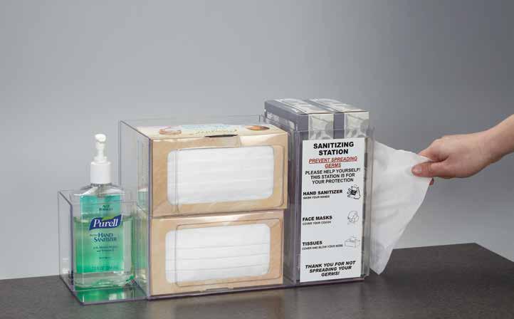 Construction - Clear plastic allows easy viewing of contents. Holds 2 boxes of face masks, 2 tissue boxes and a label. User-friendly design features instructions and invites the public to use supplies.