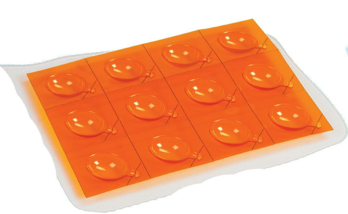 Efficient Design - This medium-cavity, 16-blister block allows an entire grid of labels (6126) to be applied simultaneously.
