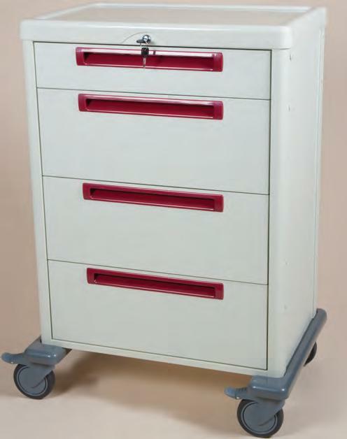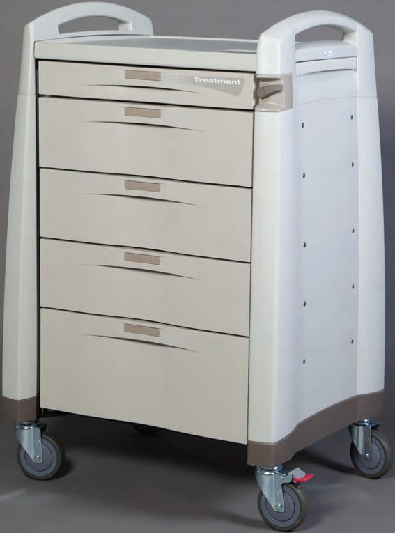 Treatment Cart Material - Steel with baked enamel finish; rust-resistant undercoating Security - Cart has center lock for all drawers and includes two keys. Additional keys and other keying options are available through our Resource Group. Construction: Removable ABS top Drawers - (2) 3"H, (1) 6"H, (1) 9"H Ball bearing drawer slides Casters - four swivel, two locking Ships assembled SHIPS TRUCK Dimensions USA HCL Item # Description W x H x D A 5319 Compact Treatment Cart 26 x 363⁄8 x 241⁄4 LOOK FOR ü MADE IN THE USA & ü HCL® EXCLUSIVE PRODUCTS. 392 Large-capacity drawers provide ample space for your necessary supplies!
