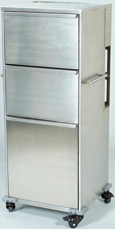 CARTS & ACCESSORIES CARTS & ACCESSORIES Can’t decide which cart is best for you? Contact our Customer Service Team 1.800.848.1633 Dimensions USA HCL Item # Description W x H x D ü ü ü A 20844 HCL Stainless Steel PPE Cart 233⁄4 x 531⁄2 x 213⁄8 WARNING: Cancer and Reproductive Harm www.P65Warnings.ca.gov HCL® Stainless Steel PPE Cart All in One - Sturdy mobile solution to store, retrieve and dispose of PPE. Material - 18-gauge and 14-gauge stainless steel Construction: Features dedicated openings for four glove boxes, two mask boxes, one box of gowns and a disposal drop slot. Includes two storage drawers for overstock supplies.
