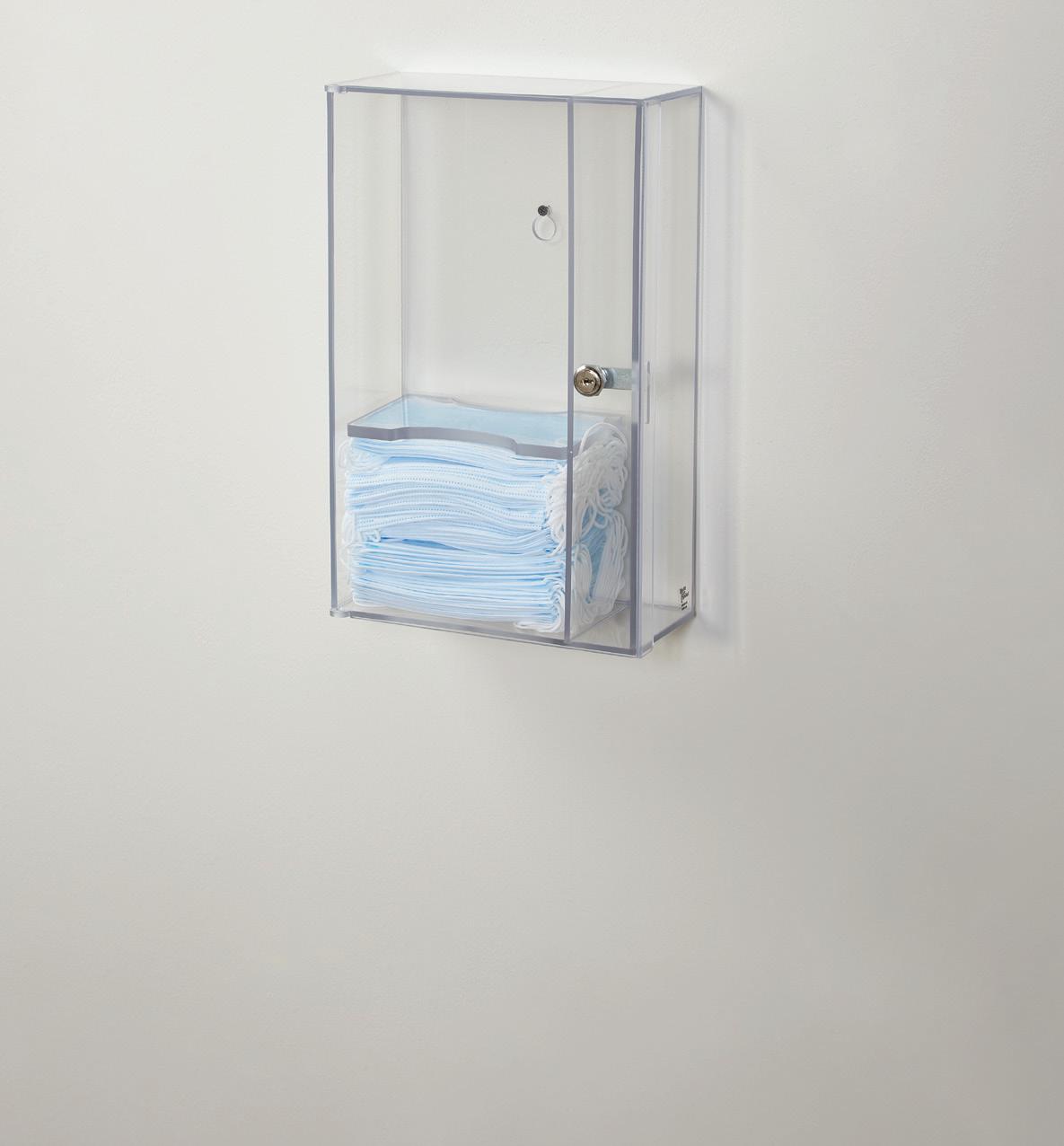 20467 - Includes sections to store flat-pack disposable gowns, 3 boxes of gloves and a box of face masks.