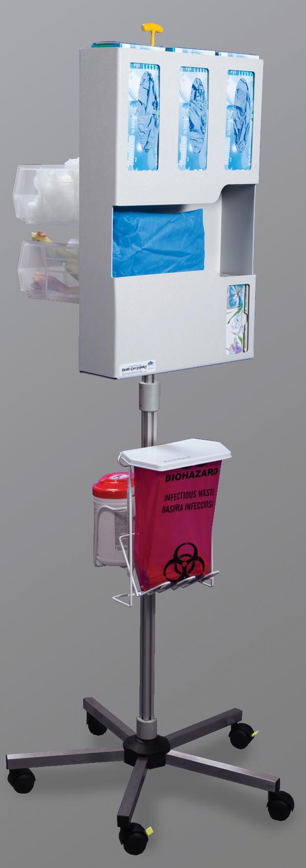 Organizers Convenient - Keep gowns, glove boxes, face masks and face shields ready for grab-and-go availability. Color options - Available in Quartz or White Sani-Cloth® Plus Wipes and Canister Bracket w/ Hardware Store disposable surface wipes. Sharps Container & Bracket Mount a 1-Quart sharps container to your mobile hygiene station.