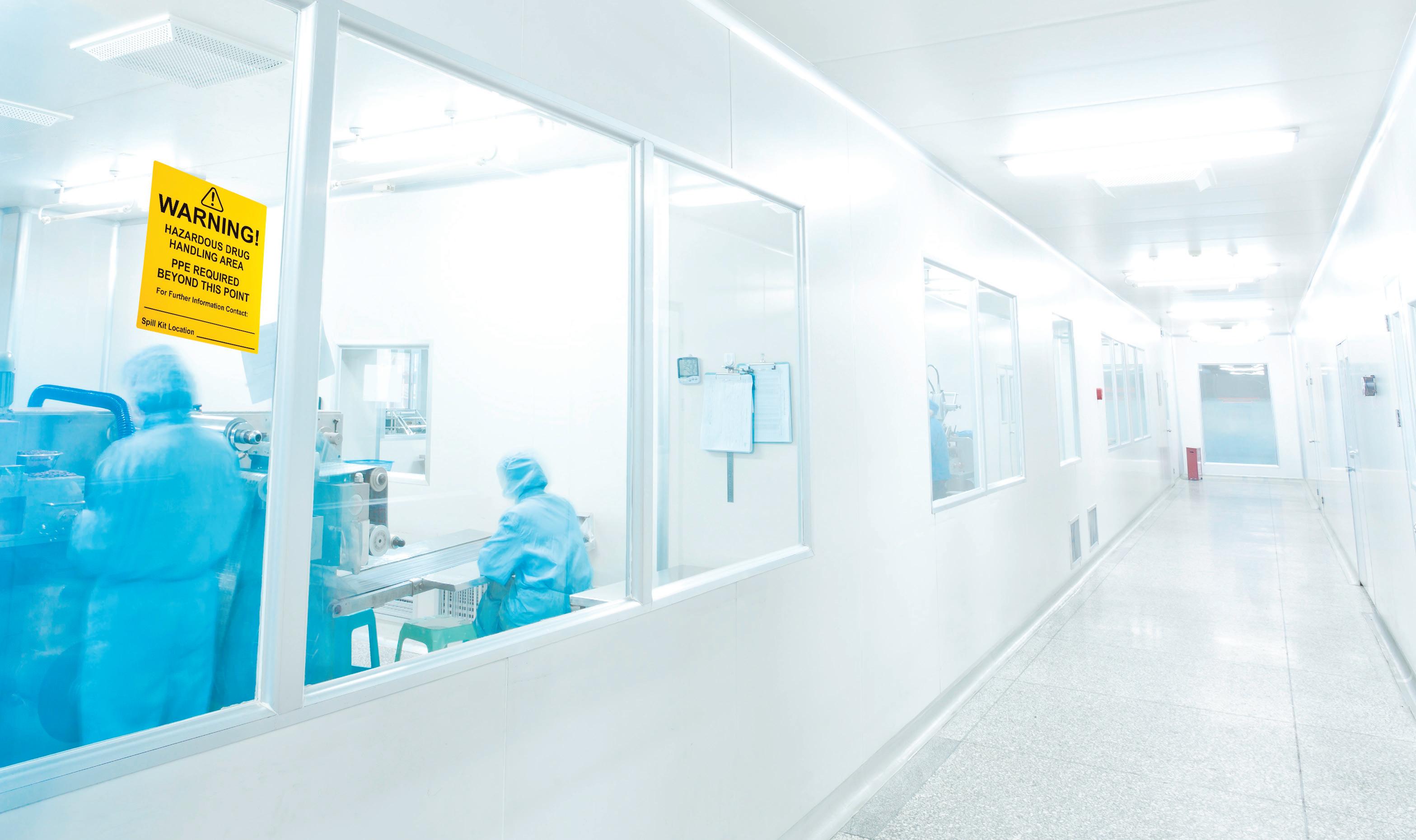cleanroom window to avoid contamination and warn others of potential safety risks associated with hazardous drug handling.