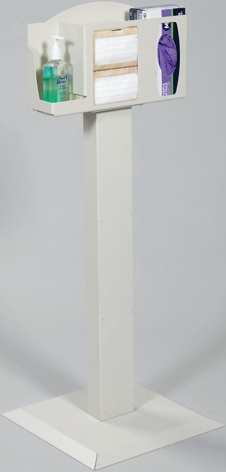 Encourage CDC Compliance - Keep supplies available for use by visitors in waiting rooms and other high-traffic areas per CDC guidelines. Lightweight powder-coated aluminum station holds a variety of items such as tissues, masks, gloves and hand sanitizer.