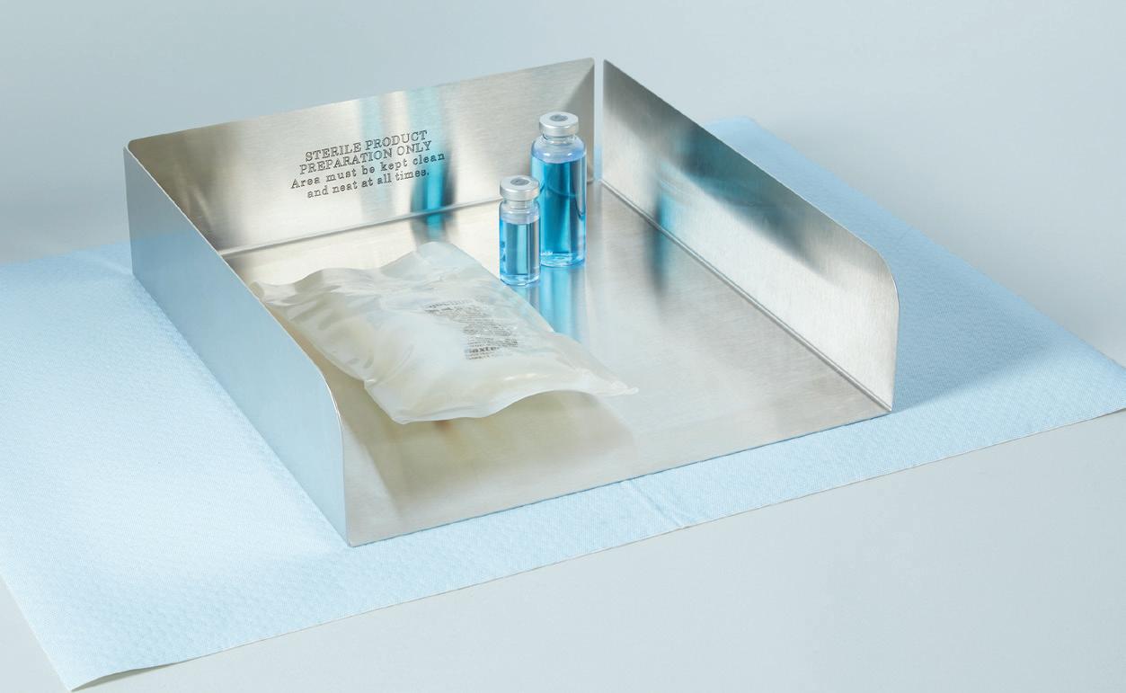 Easy-to-Clean Prep Space - Stainless Steel tray with open corners provides an ideal surface for sterile medication preparation. Open design prevents debris from getting stuck and allows liquid to easily drain after cleaning. Compatible with medical-grade cleaners.