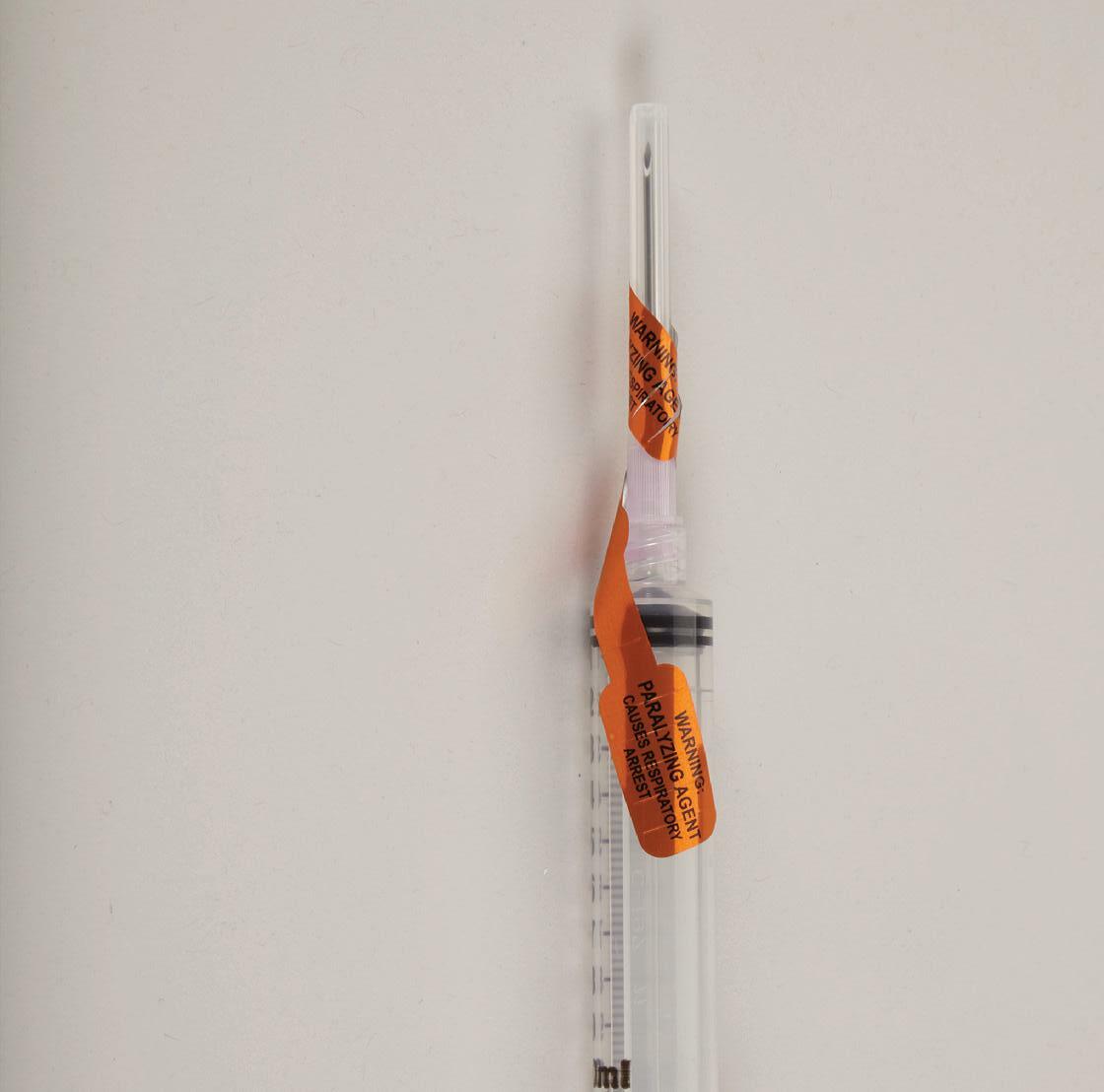 Bands Reduce Errors - Shrink Bands force users to remove a cover during administration, thus reducing medication errors. Compatibility - Fits 10mL vials Vial Rings Improve Patient Safety - Flexible vial rings raise awareness for critical drugs and help prevent med dispensing errors. Dimensions USA HCL Item # Description Dia. Qty. ü ü B 2826 Paralytic Agent Vial Rings 13⁄4 10 Pull Tab enables quick access to medication. B USA HCL Item # Description Qty. ü A 20287 Steri-Tamp Paralyzing Agent 1,000 Bag Port Seals