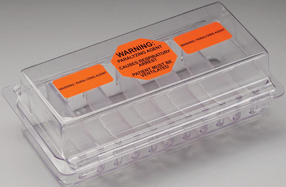 GoHCL.com • hcl@GoHCL.com • Call: 1.800.848.1633 • Fax: 1.800.447.2923 ERROR PREVENTION & PATIENT SAFETY ERROR PREVENTION & PATIENT SAFETY 659 Dimensions USA HCL Item # Description W x H x D ü ü ü A 20809 Covered Paralyzing Agent Tray 8 x 23⁄4 x 43⁄4 www.P65Warnings.ca.gov WARNING: Cancer Covered Paralyzing Agent Tray Reduce Errors - Clear plastic covered tray provides segregated storage of paralyzing agents. Warning labels on lid encourage double checks for a safer patient environment. Easy to Clean - Labels are safe for use with disinfectants and wipes. A NEW NEW no need to hide under a rock. Deactivate Drugs and Dodge Danger Instantly! RX Destroyer™ deterra®