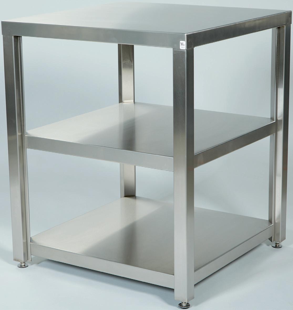 One open side allows user to work while seated. 16-gauge stainless steel Weight capacity 300 lbs. evenly distributed