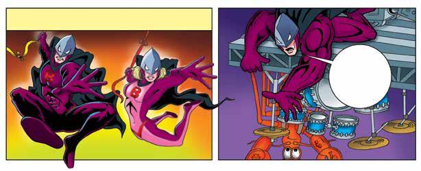 BAGMAN AND BAGLADY ARE BACKSTAGE AT A ROCK LOBSTAR CONCERT.