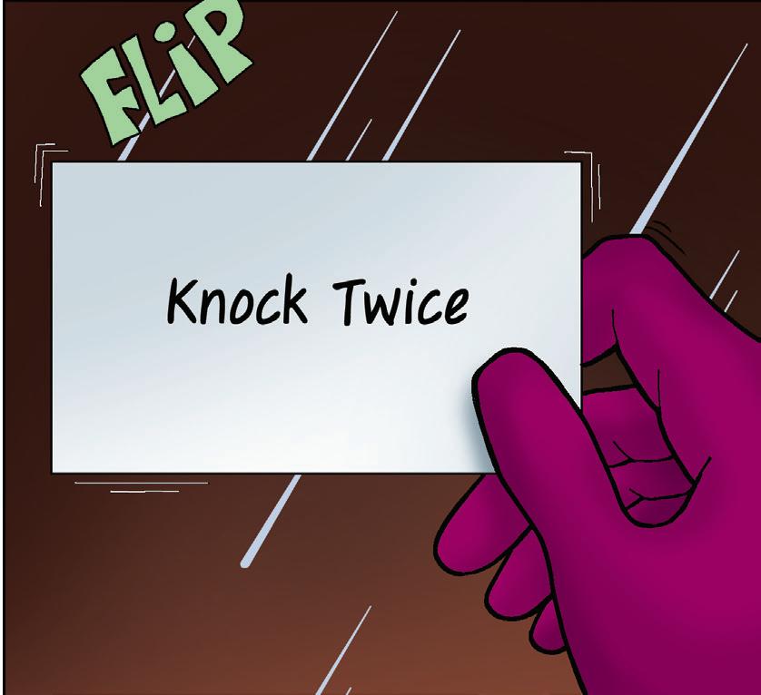 HE FLIPS IT OVER, REVEALING A NOTE.