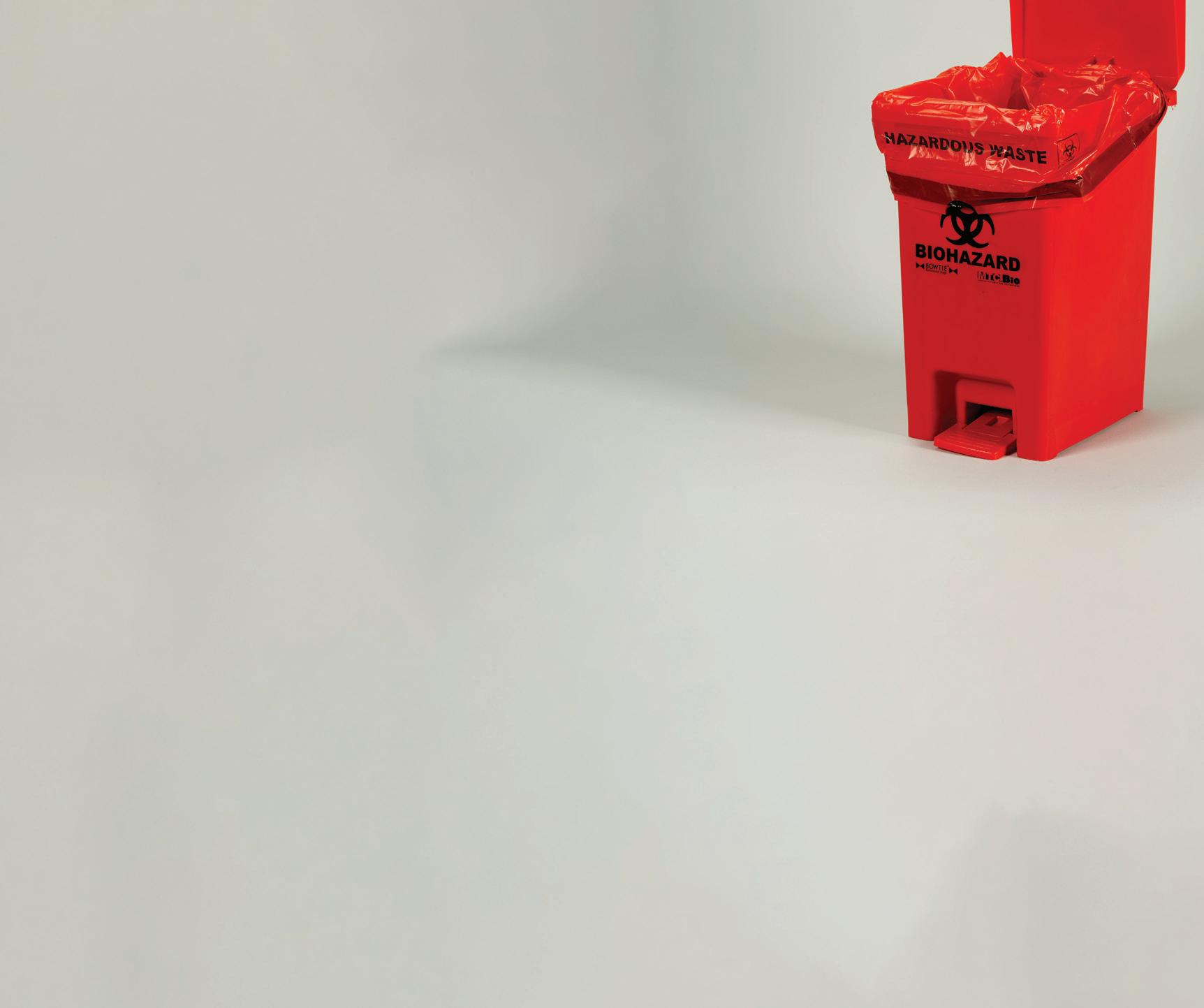 Touchless Design - Foot pedal enables contents to be added and bags to be removed without handling container. Ideal for use with BowTie Biohazard Bags (20589).