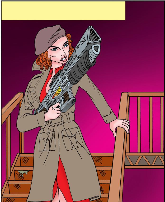 SCARLET PICKS UP THE NET GUN, AIMS IT AT BAGLADY AND JUST BEFORE SHE FIRES...