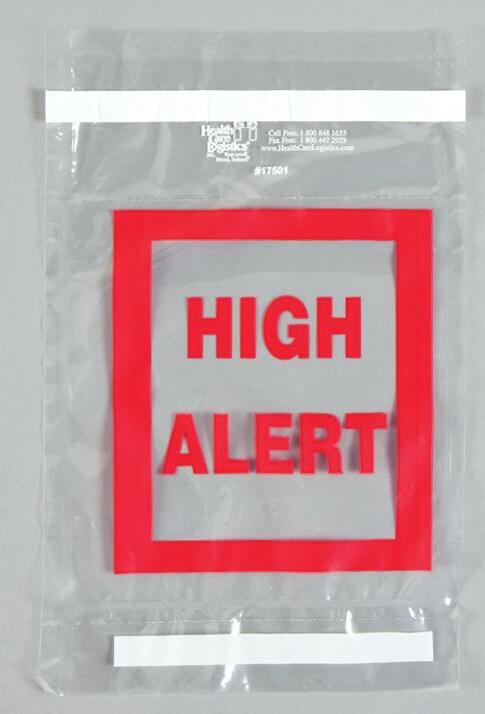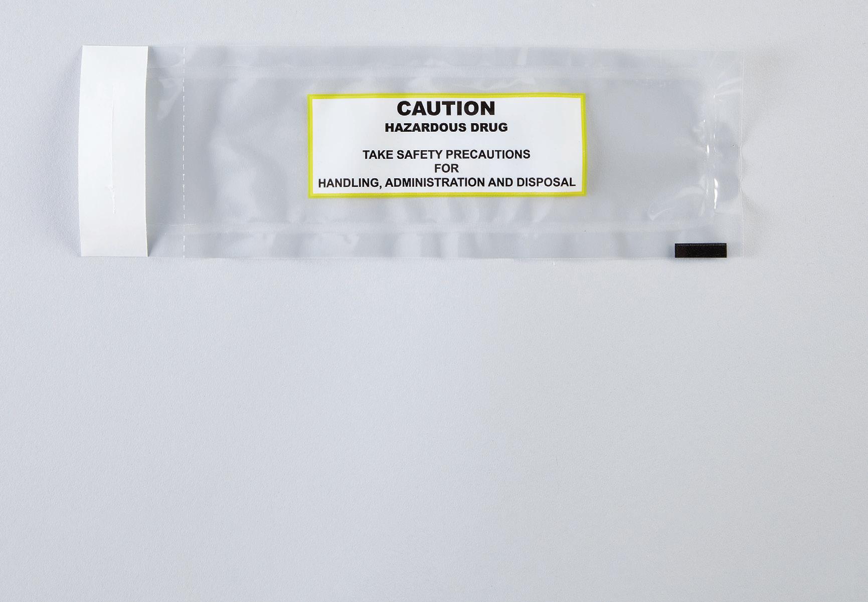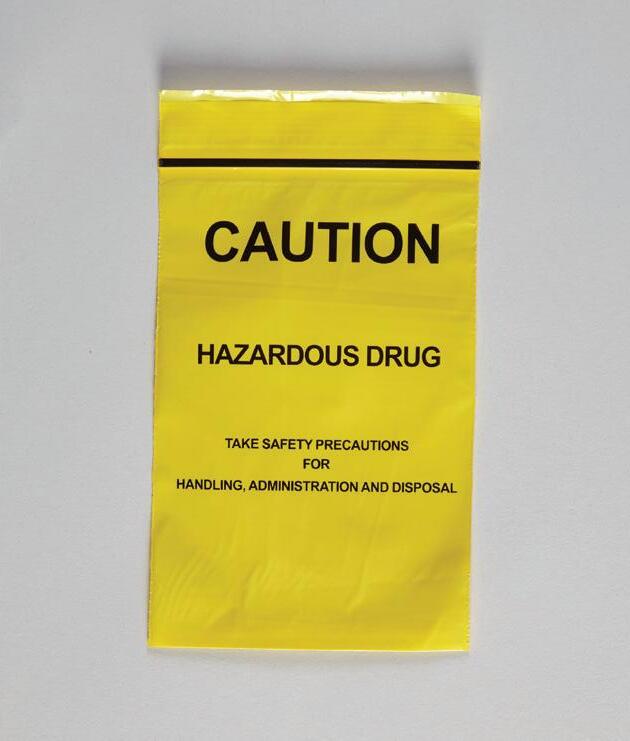 Preprinted Message - Clear bags with Black text and Yellow border alert workers to special instructions when working with hazardous drugs.