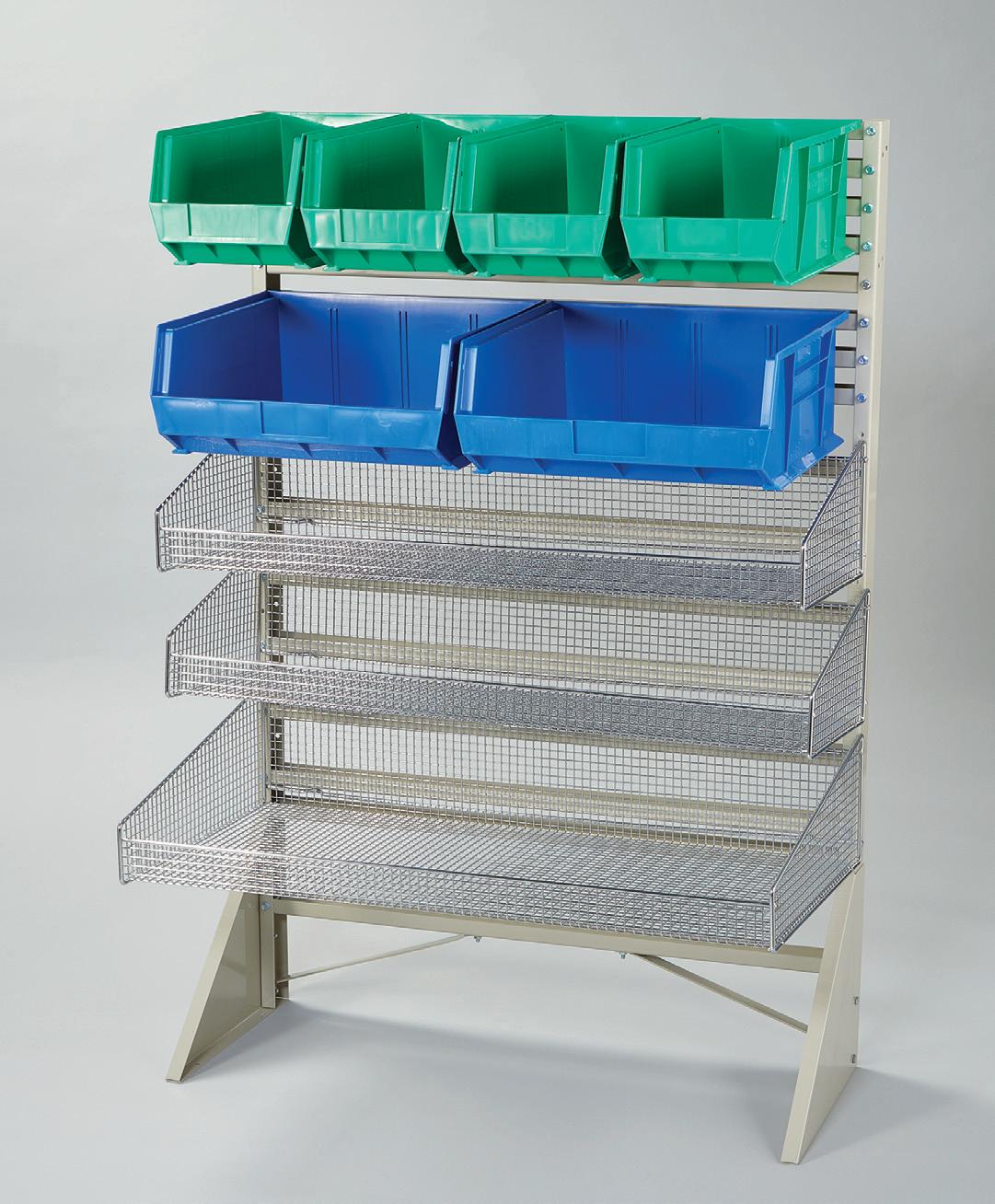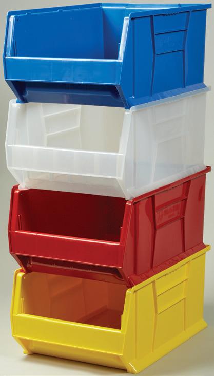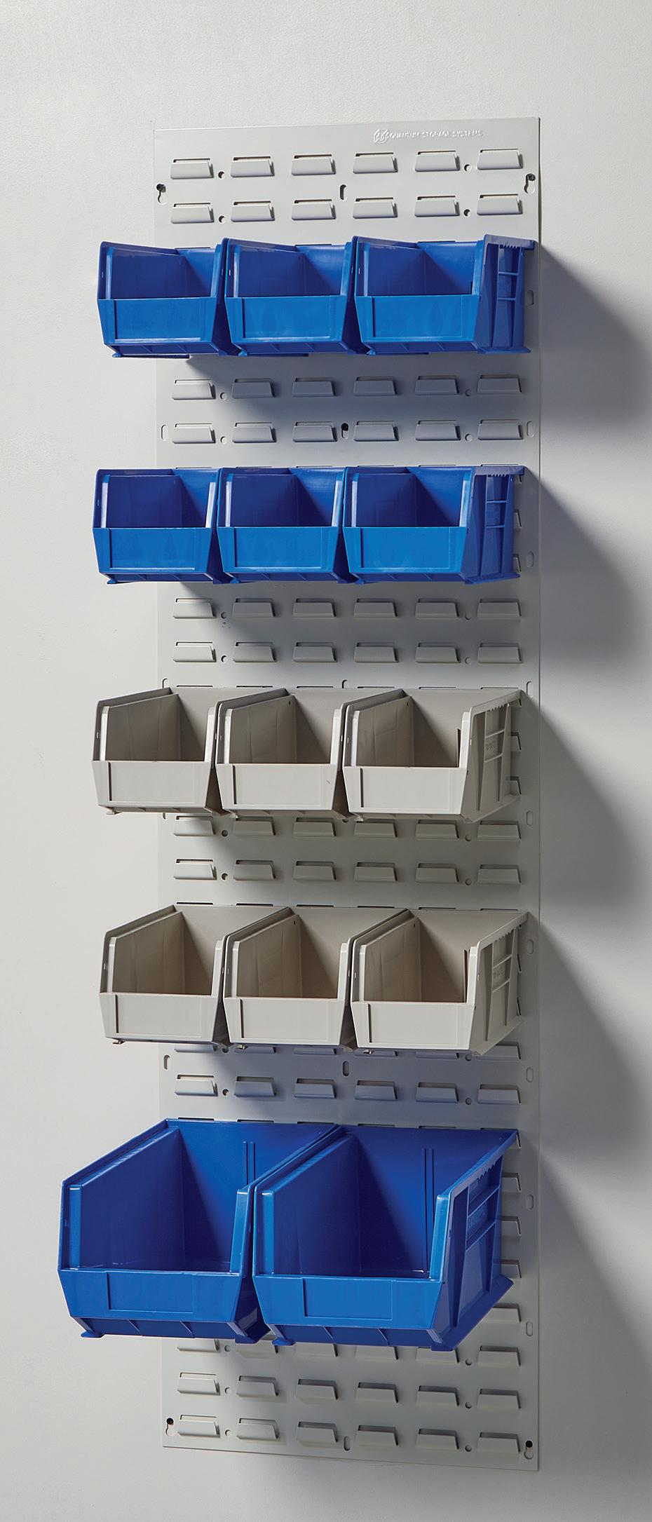 Stack or Hang - Bins can be stacked or hung from panels and rails.
