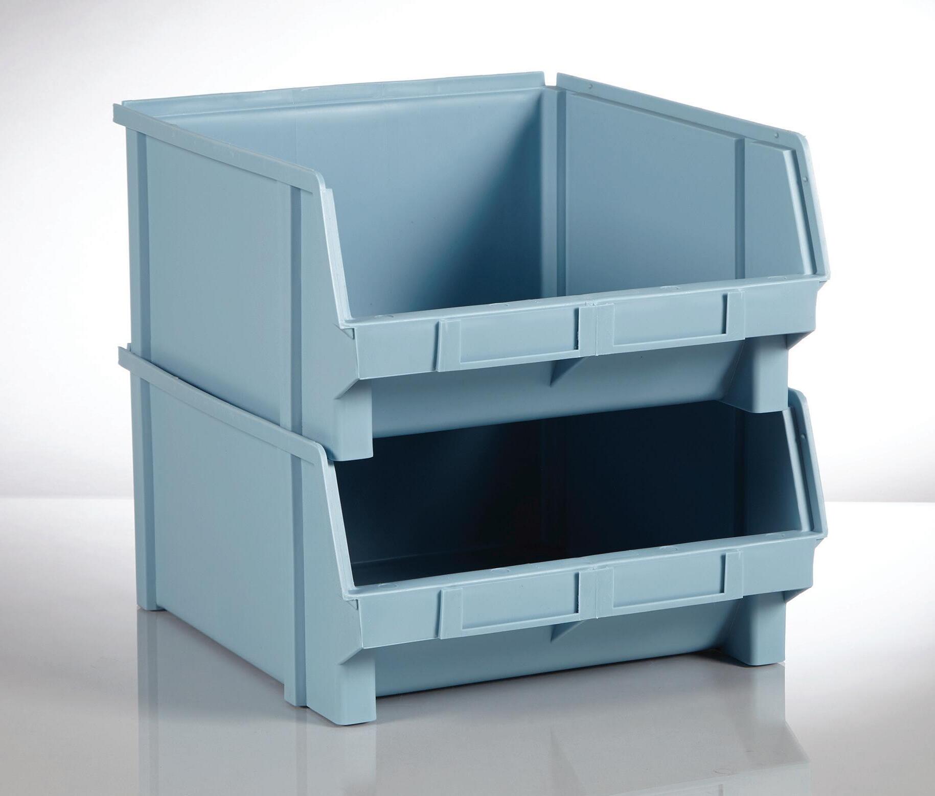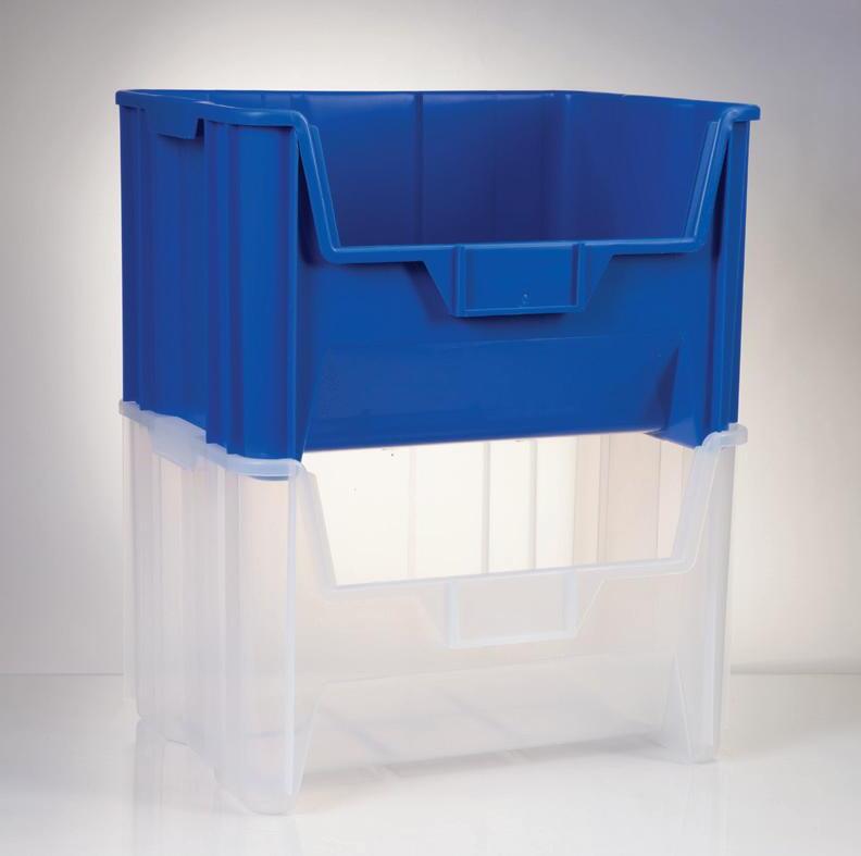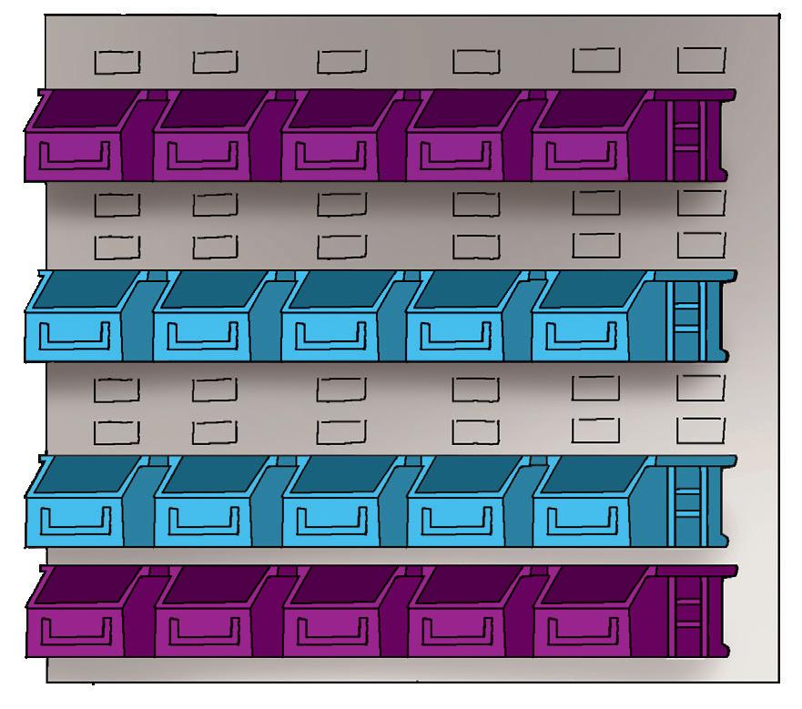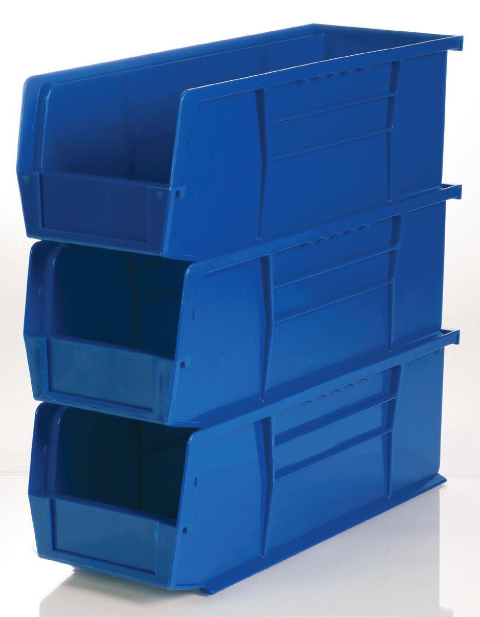 Stack or Hang - Bins can be stacked or hung from panels and rails.