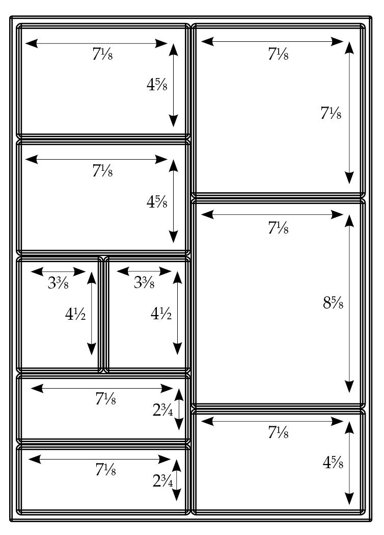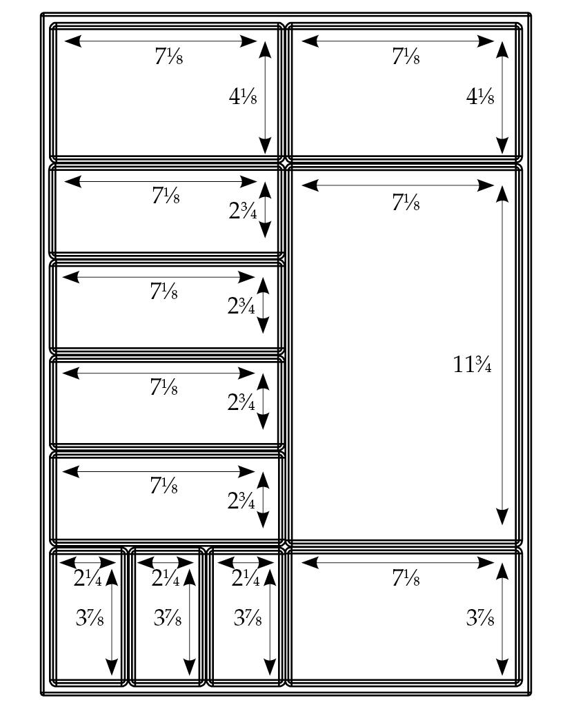 (3) 21⁄4"W x 19⁄16"H x 37⁄8"D (1) 71⁄8"W x 19⁄16"H x 113⁄4"D (1) 71⁄8"W x 19⁄16"H x 37⁄8"D need a different configuration? our resource group can help!
