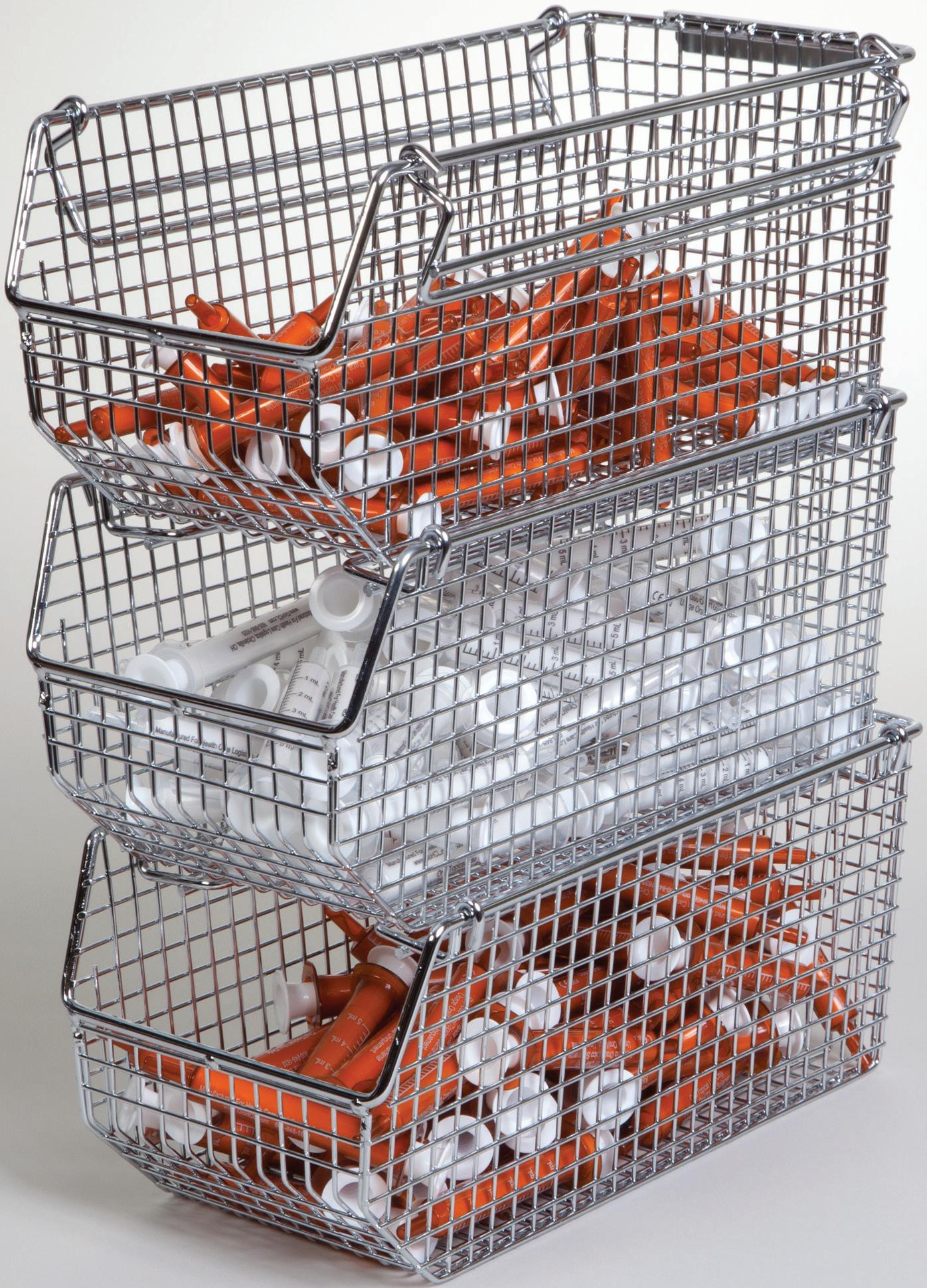 Cleaner Storage - Nickel-chrome finish with 3⁄8" x 3⁄8" mesh pattern reduces the collection of dust and dirt. Smart Design - Open-hopper design allows for easy picking while maintaining visual access to stored contents.