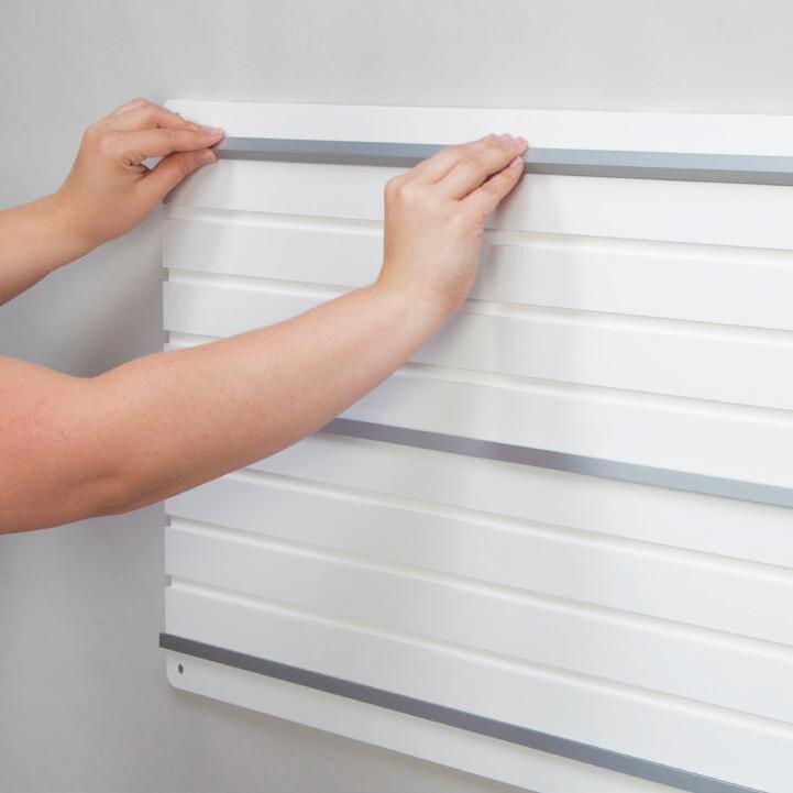 Customized Storage - Continuous horizontal channels are vertically spaced every 1". Channel design allows shelves or bins to hang in a variety of positions.