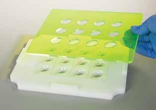 Easy-to-Fill - Ointment Blister Filler/Sealing Tray is a two-piece system that uses an acrylic base to hold ointment blisters and an overlay to prevent ointment from spilling onto blister edges. Color overlay provides an easy visual cue for mess-free filling.