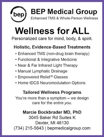 Led by Dr. Marcie Bockbader, MD, PhD, FAAPM&R, FASAM, our multidisciplinary holistic treatment team uses stateof-the-art technology and treatment modalities to treat the entire person: body, mind, spirit, and lifestyle. We firmly believe that addressing health issues requires more than a “one size fits all” approach. Our enhanced TMS (enTMS) and Wellness treatment plans are tailored to each patient to enhance outcomes and provide optimized results. See ad page 9.