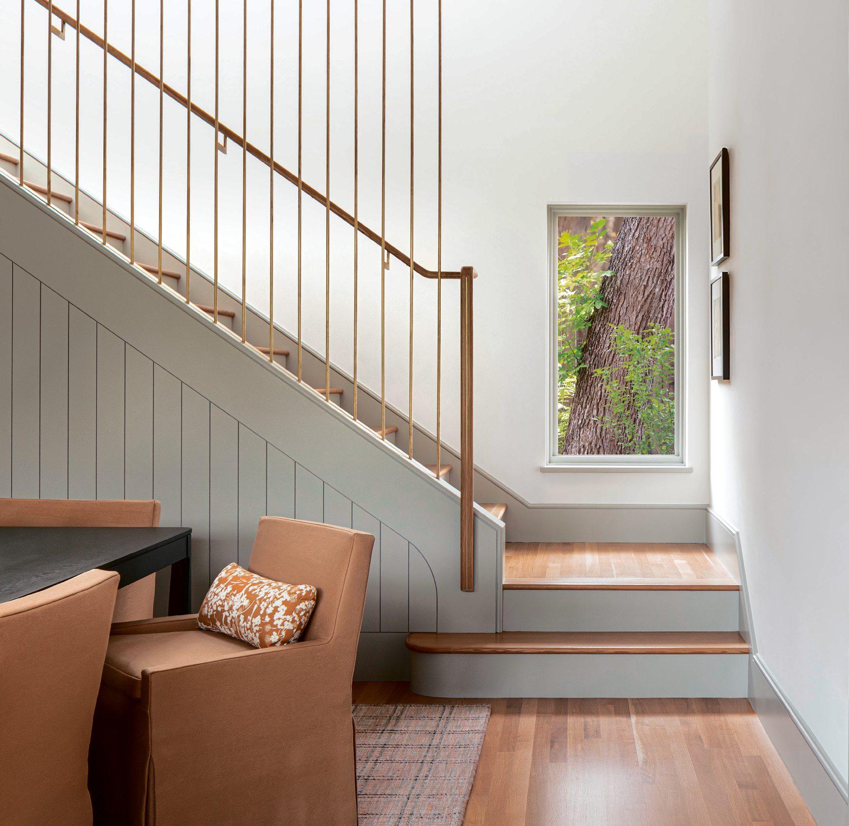 Setwithina four-unitbuilding, theproject wastaken down to thestuds andreimaginedasa single, cohesive environment. Garcia’s modernistsensibility is evidentthroughout. Educated at TexasTech andshapedbypracticeinLos Angeles, SanAntonio,and Austin,hefavorslegible structure,disciplined massing,and ameasuredpalette.Those principles come into focusinthe newsteel-and-woodstaircase, whichactsasthe home’s architecturalspine.Perforatedrisersand guardrails pull daylight deep into the interior,dissolvingwhatwereonceisolated floors