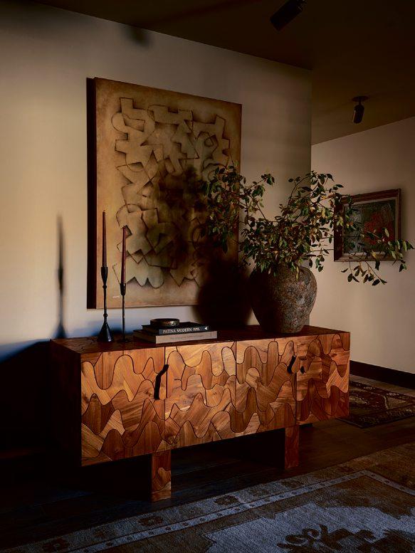 That philosophy is evidentinrecentAustinprojects, includingthe Rosedale home of DomHaury,the renowned woodworker,sculptor, andpainter,and hispartner Kelsey Saikami, a floral designer,aswell as Benjamin’s work forartistRFAlvarez,whose residencewas featured as thecover storyofAustin Home’s Winter 2024 issue. In both,the interiors feel lived-in andintuitive,playful withoutpretense, thoughtful withoutrigidity.