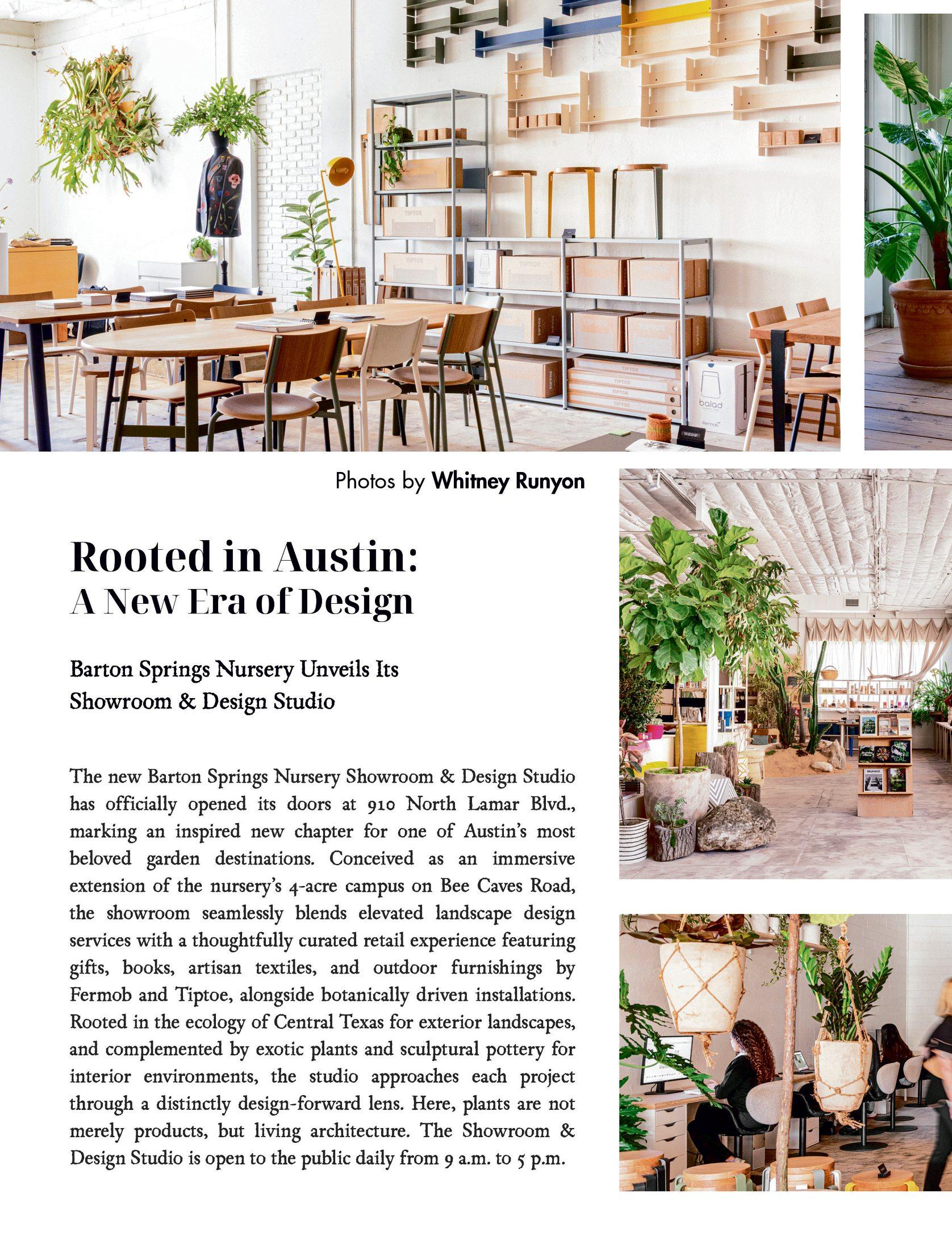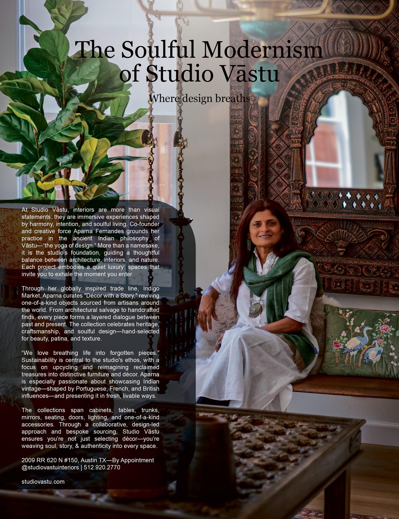 Taken together, these projects mark a shift Austin no longer relies on borrowed language or coastal cues The work in this issue reflects a city comfortable with contradiction, nuance, and individuality, a place where many voices can coexist without flattening into a single “look ”