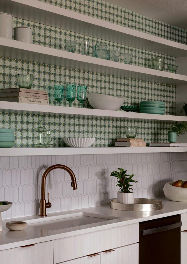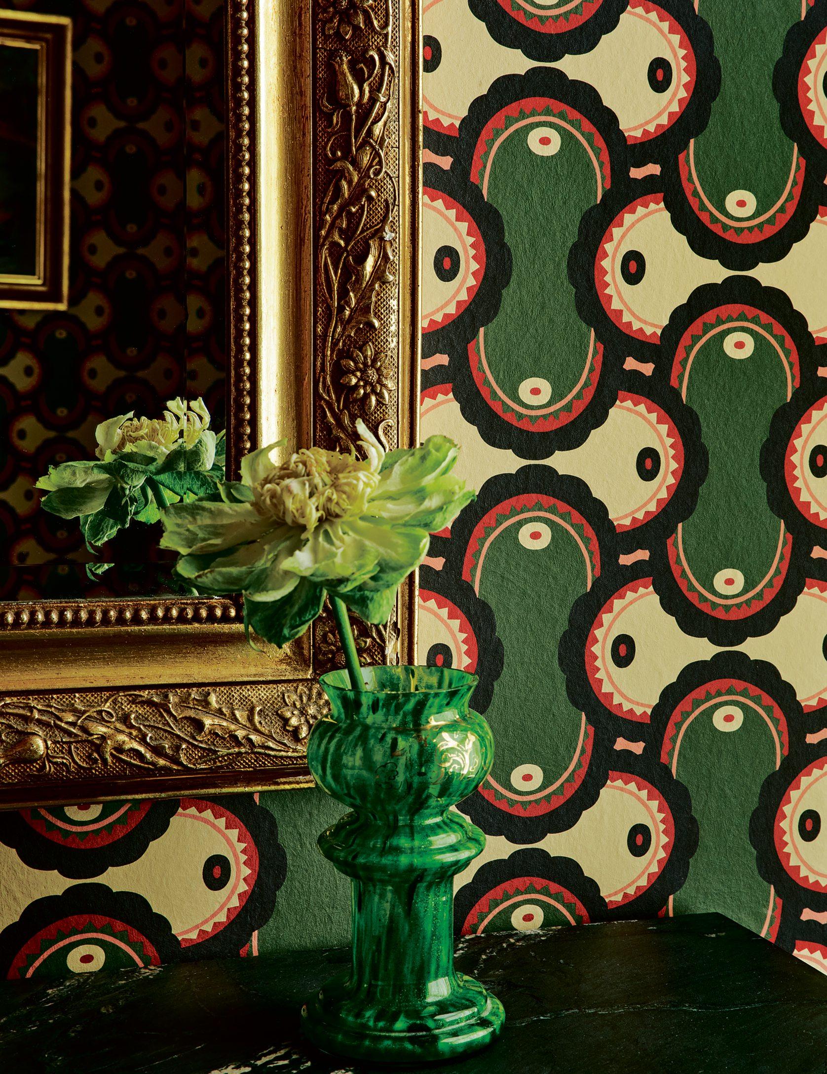 Throughout thehouse,expressivewallpapers, painted millwork,and coloredplumbingfixturesappear with precisionand restraint. Each choice feelsdeliberate, enhancingthe rhythm of moving throughthe home.The result is aspace that feelsdynamic yetharmonious—proof that when colorisusedthoughtfully, it canbring coherence, personality, anddelight to everycornerofa house.