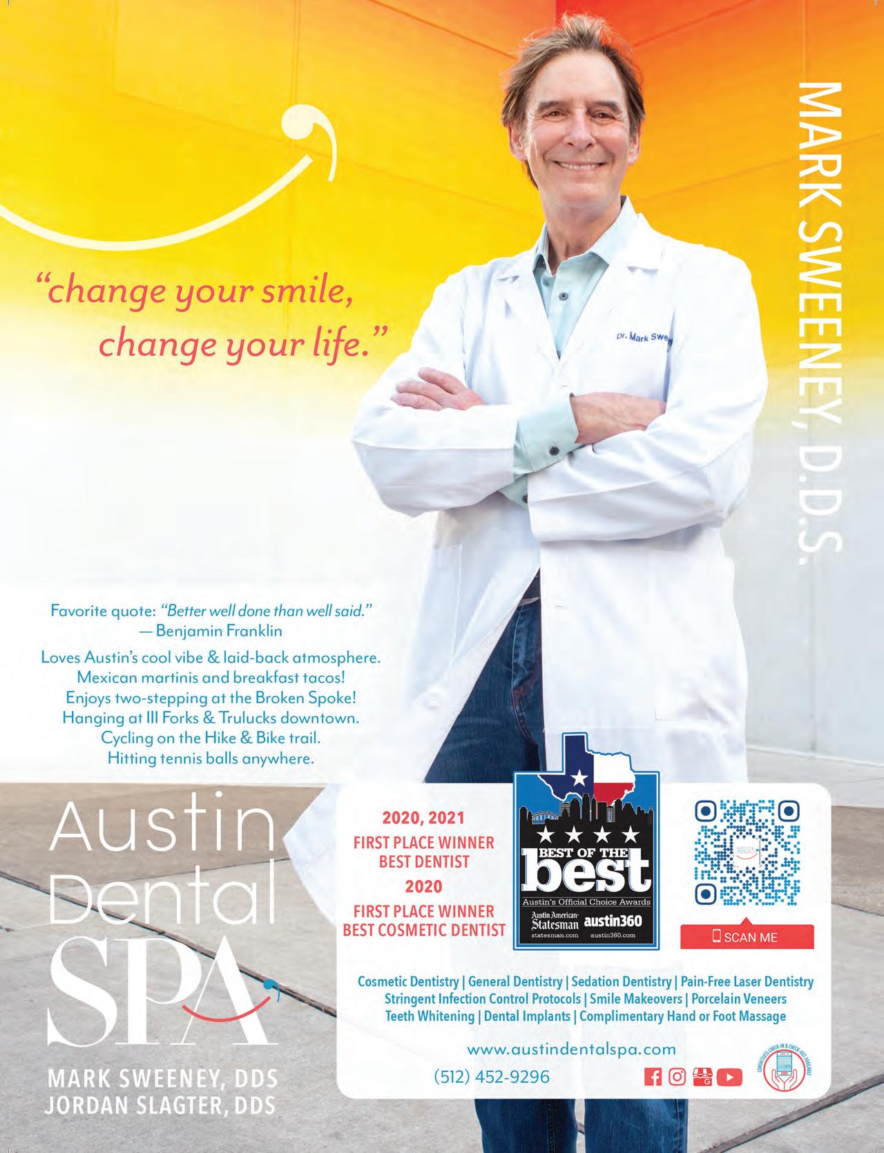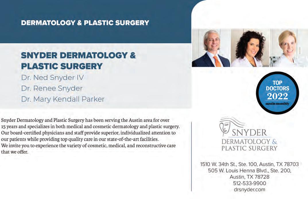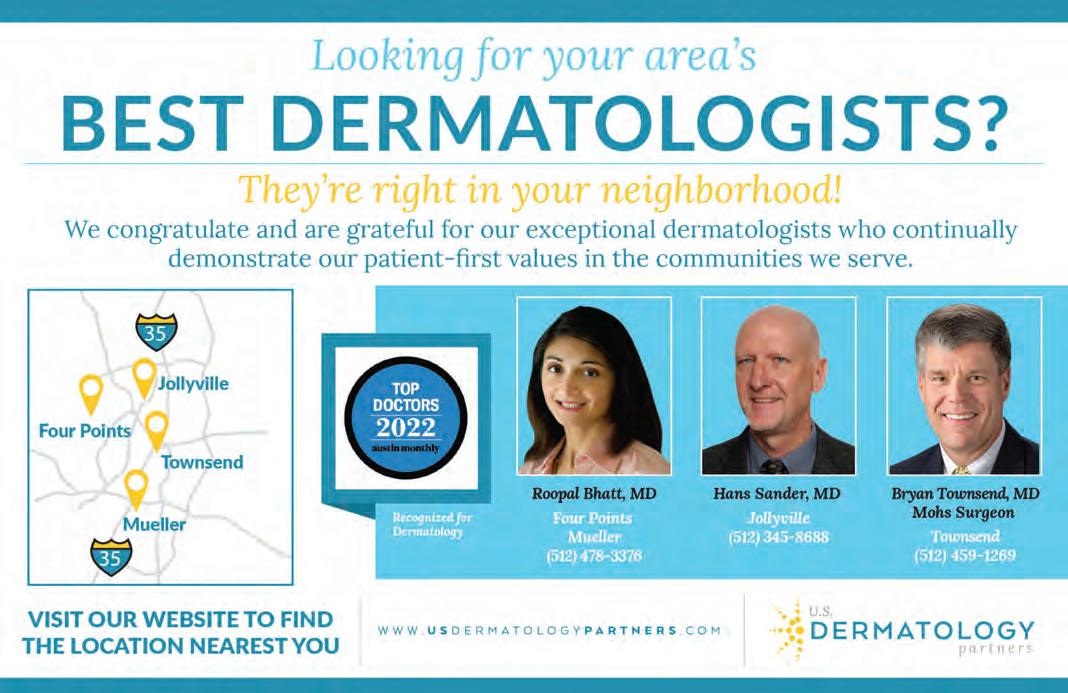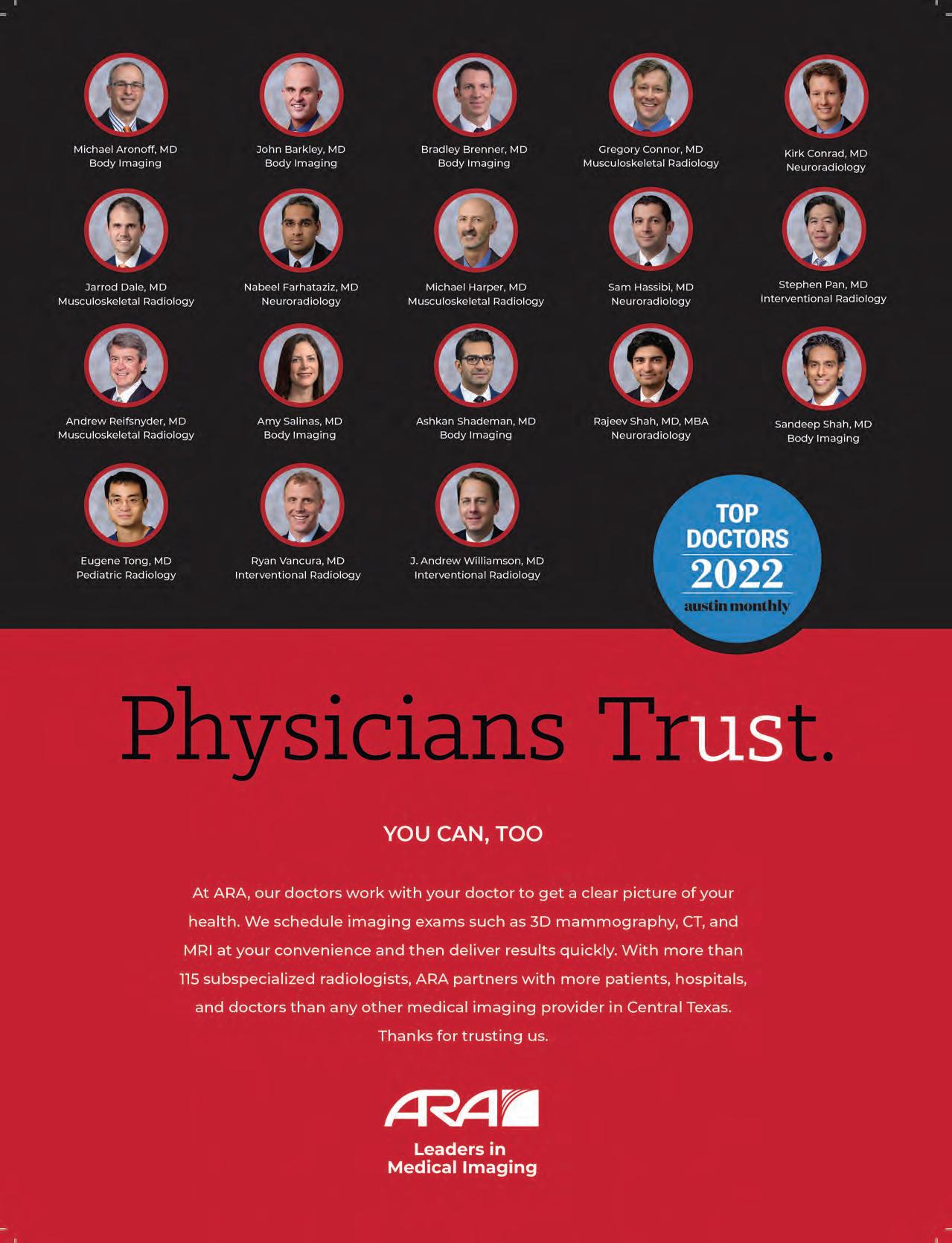 Austin Monthly uses best practices and exercises great care in assembling content for this list. It does not warrant that the data contained within the list are complete or accurate. Austin Monthly does not assume, and hereby disclaims, any liability to any person for any loss or damage caused by errors or omissions herein, whether such errors or omissions result from negligence, accident, or any other cause. All rights reserved. No commercial use of the information in this list may be made without written permission from Austin Monthly. If you see an error in the information listed, please contact info@ austinmonthly.com.