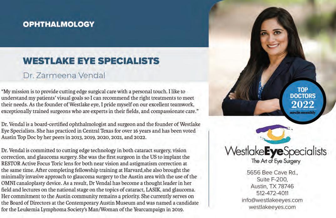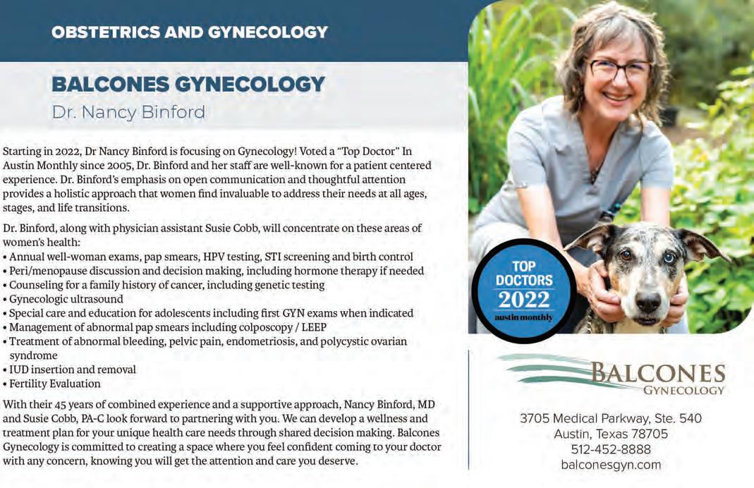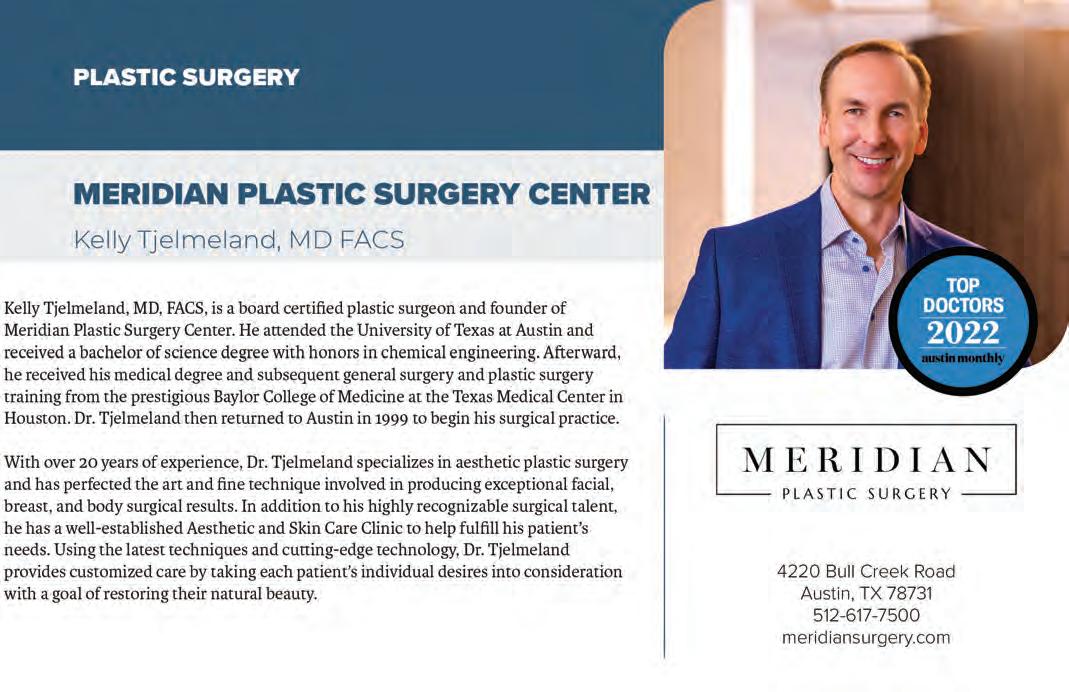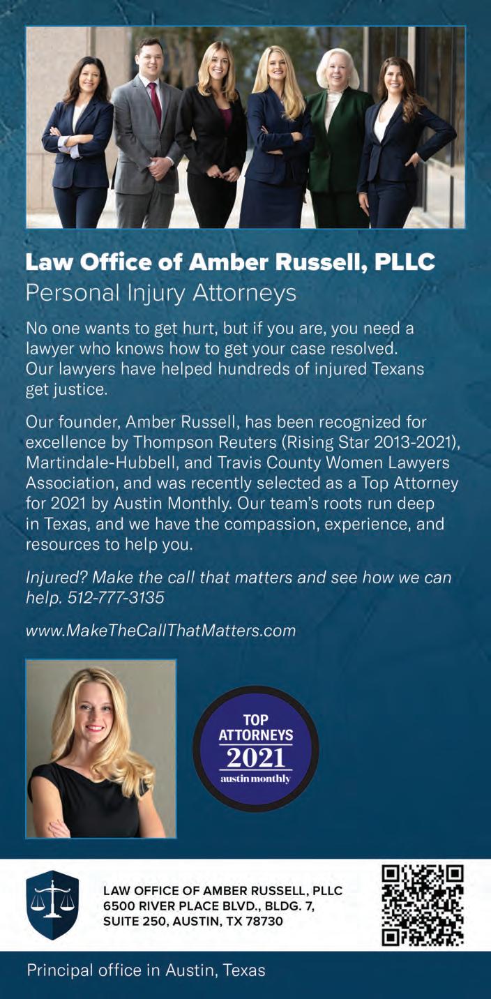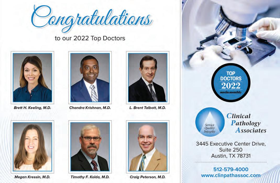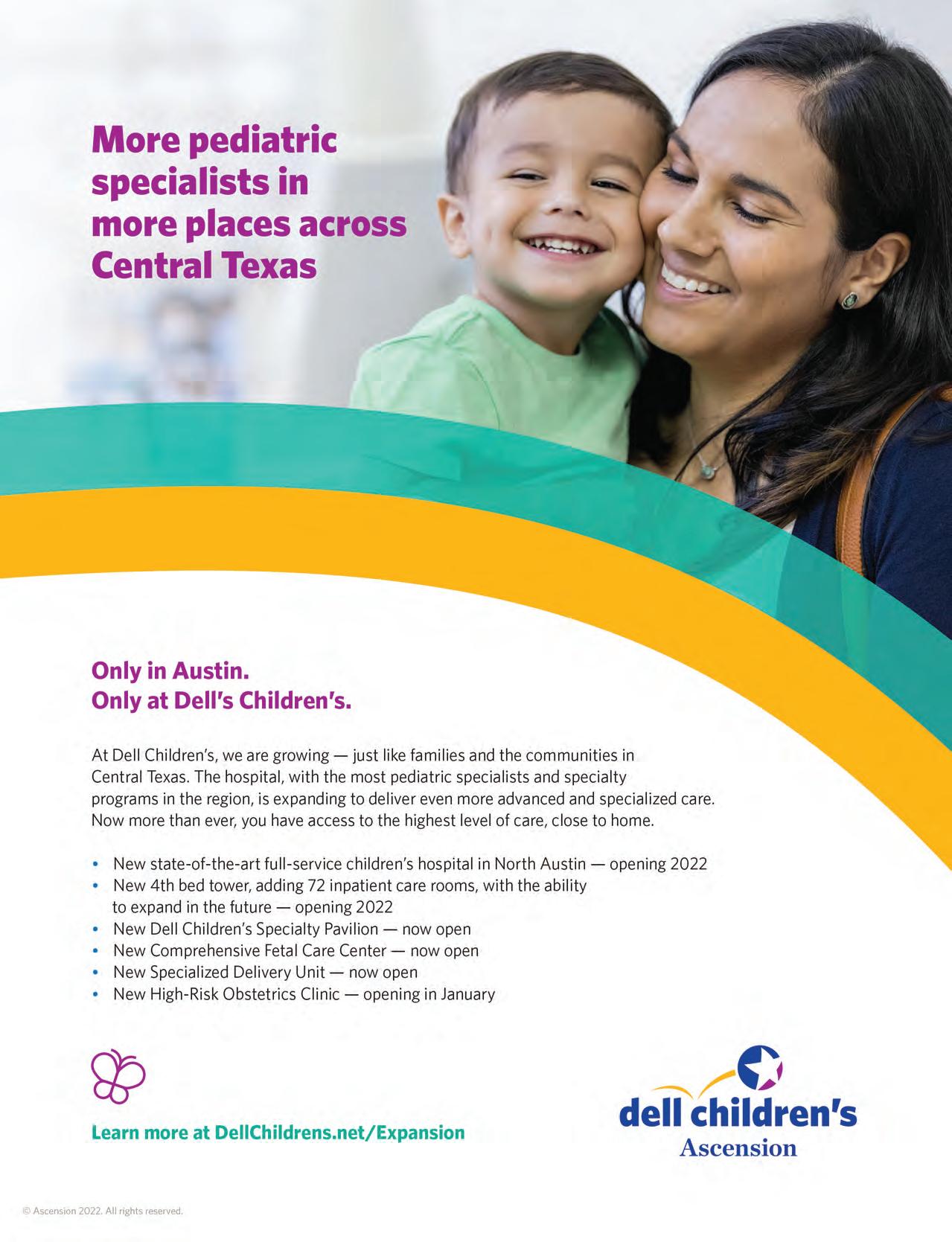 Austin Monthly uses best practices and exercises great care in assembling content for this list. It does not warrant that the data contained within the list are complete or accurate. Austin Monthly does not assume, and hereby disclaims, any liability to any person for any loss or damage caused by errors or omissions herein, whether such errors or omissions result from negligence, accident, or any other cause. All rights reserved. No commercial use of the information in this list may be made without written permission from Austin Monthly. If you see an error in the information listed, please contact info@ austinmonthly.com.