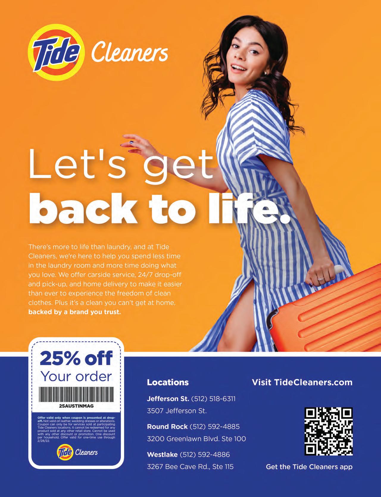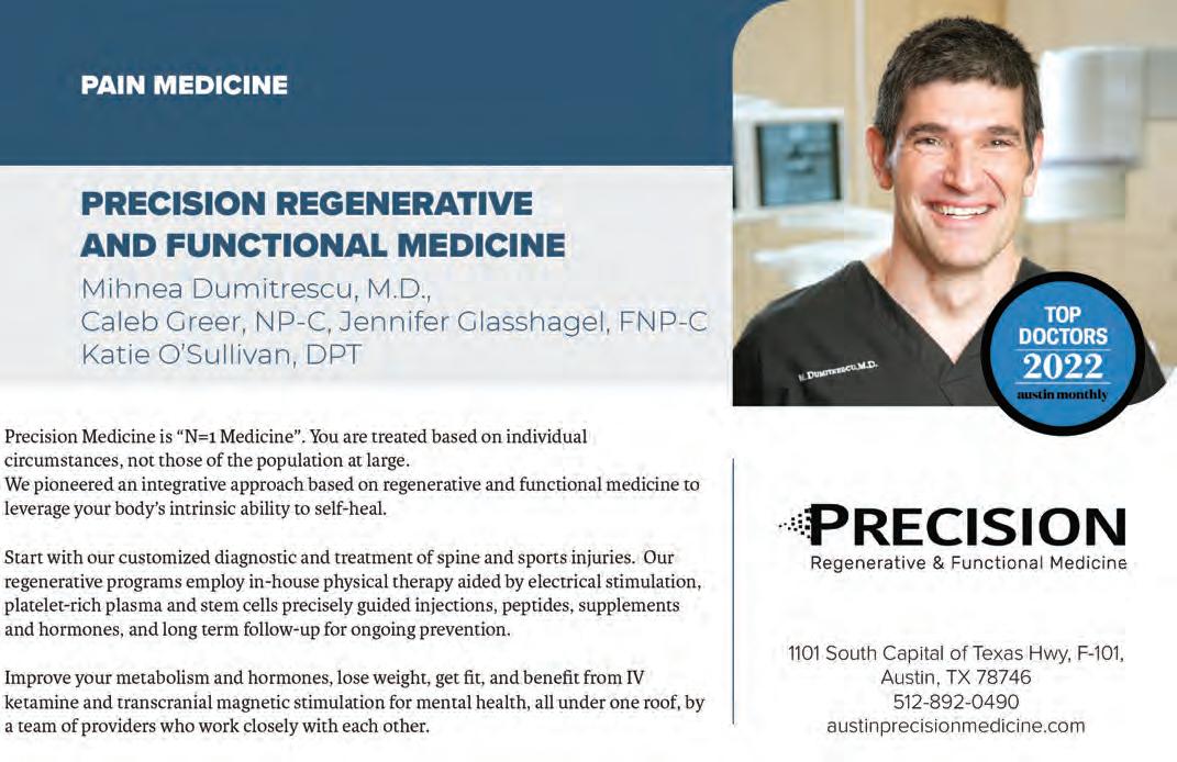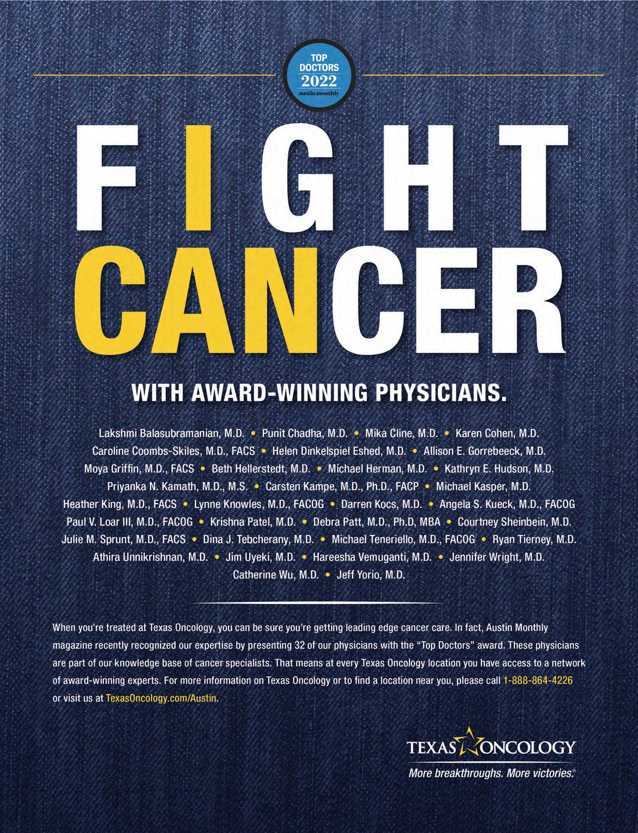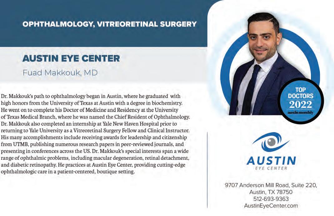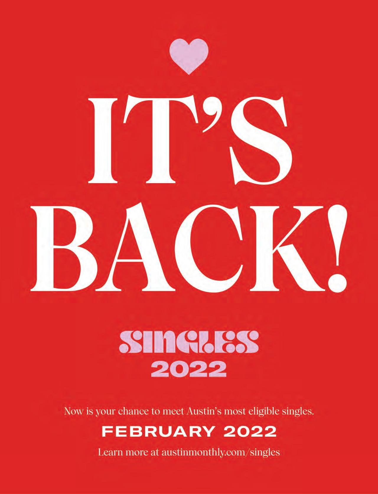 Austin Monthly uses best practices and exercises great care in assembling content for this list. It does not warrant that the data contained within the list are complete or accurate. Austin Monthly does not assume, and hereby disclaims, any liability to any person for any loss or damage caused by errors or omissions herein, whether such errors or omissions result from negligence, accident, or any other cause. All rights reserved. No commercial use of the information in this list may be made without written permission from Austin Monthly. If you see an error in the information listed, please contact info@ austinmonthly.com.