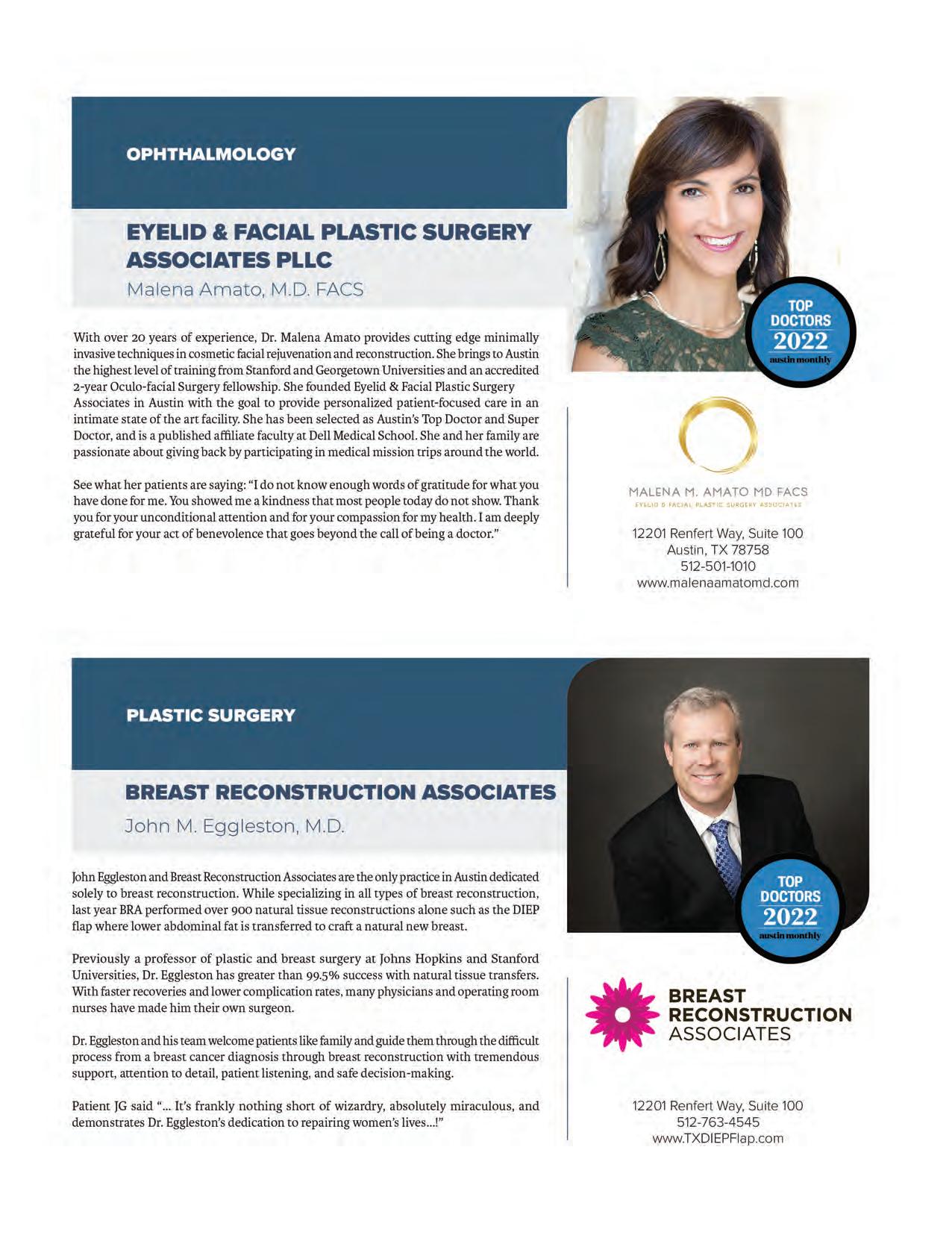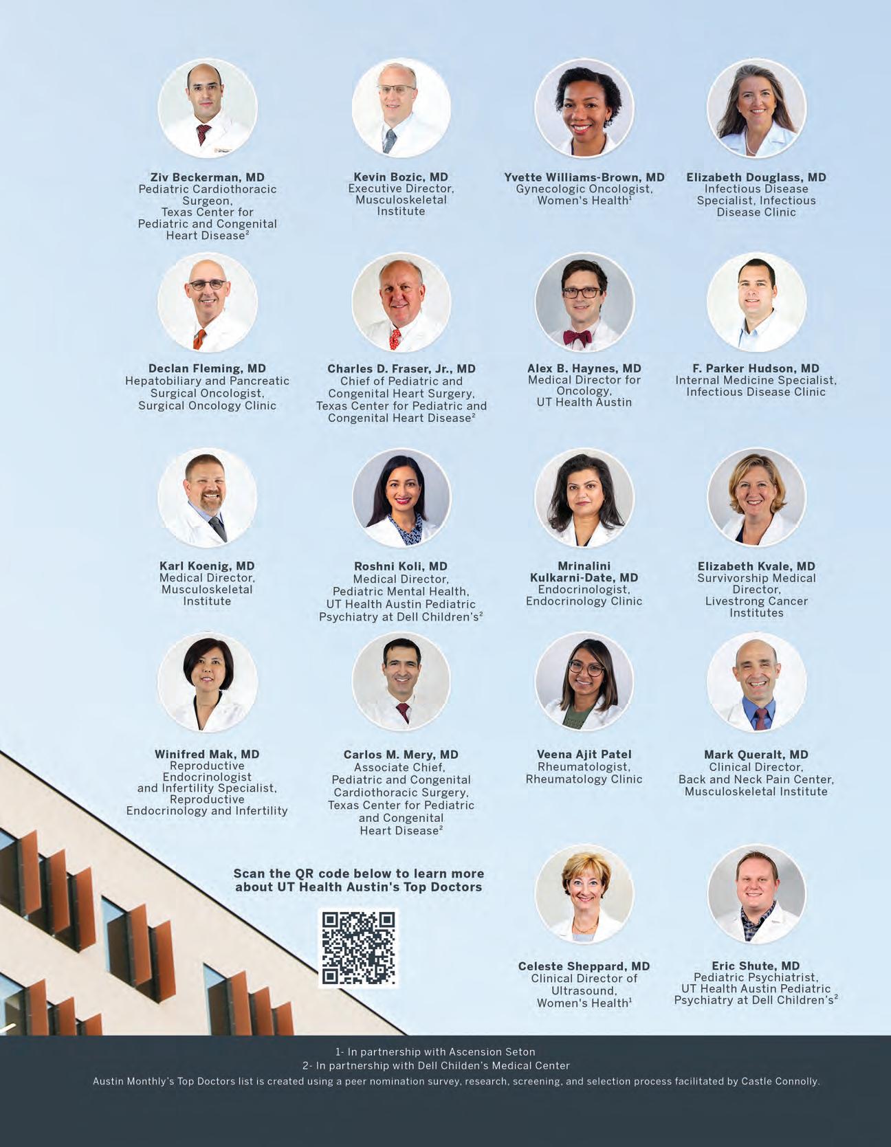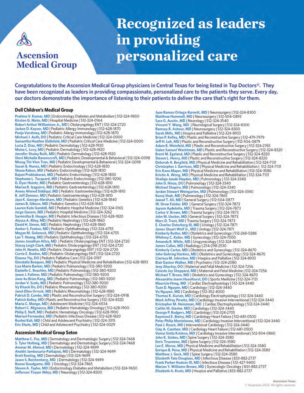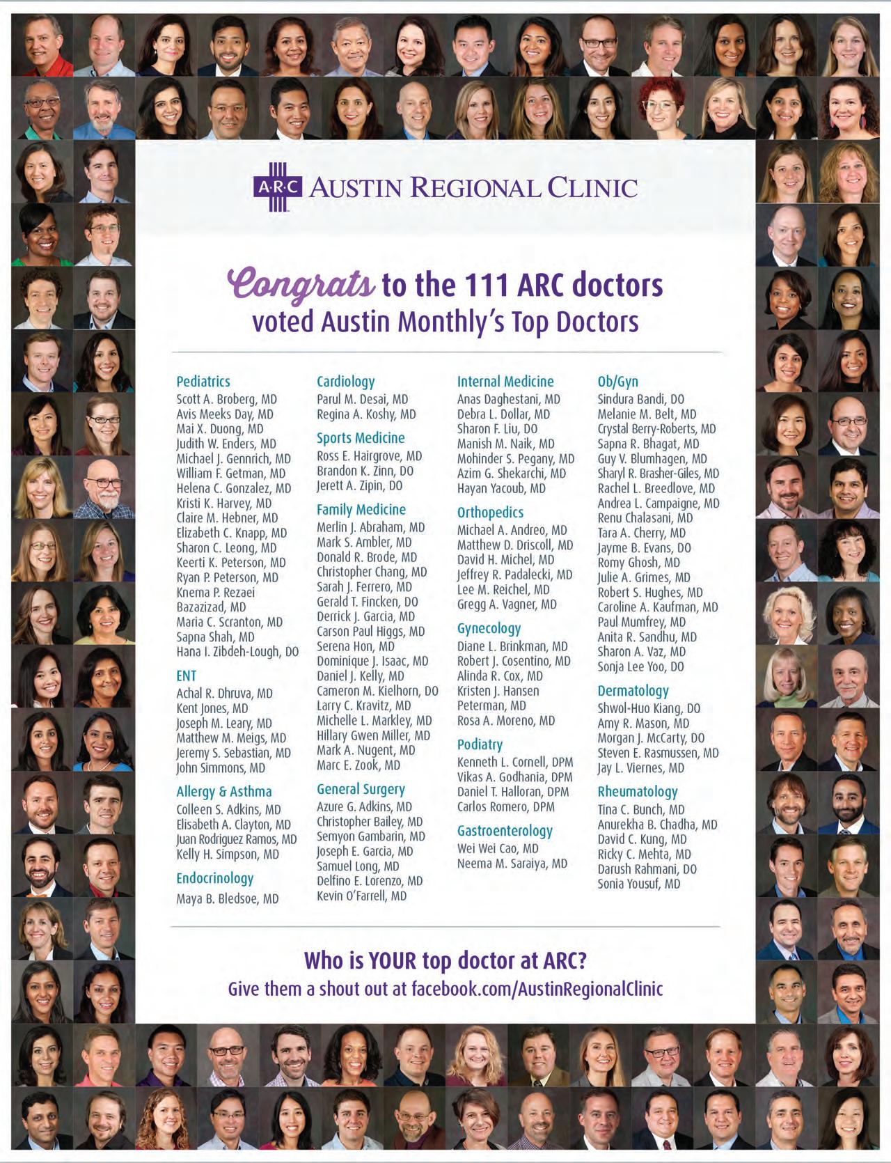 Using an online survey, Austin Monthly solicited peer nominations from physicians in Travis, Hays, and Williamson counties, asking them to nominate up to three doctors per practice area who they would trust with the medical care of themselves or their family. To ensure the nomination process is peer-based, full contact information was requested before nominating, and doctors were asked to limit their nominations to physicians whose work they’ve personally witnessed. Austin Monthly then tallied the results, selecting the top percentage of vote recipients in each practice area before submitting the final list to our fact-checking process, which includes a review of good standing among medical boards.