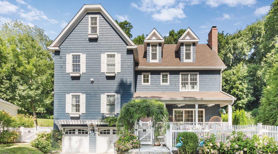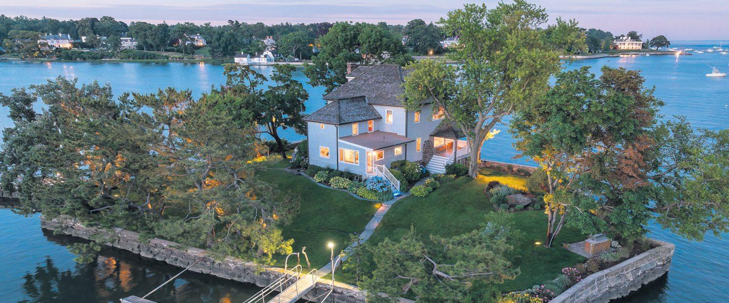 LocatedinStamford’sShippan Pointwaterfrontcommunity,the four-bedroom FrenchChateau-style home at 141 DownsAvenueis perfectlyplacedona 0.61-acre setting,among perennial gardens andwith172-feet of frontage on theSound.Barbara Ryan,a RealtorwithWilliamRaveis’ Stamford brokerage, is thelisting agent. Theaskingprice is $3.35 million.