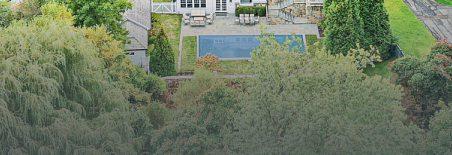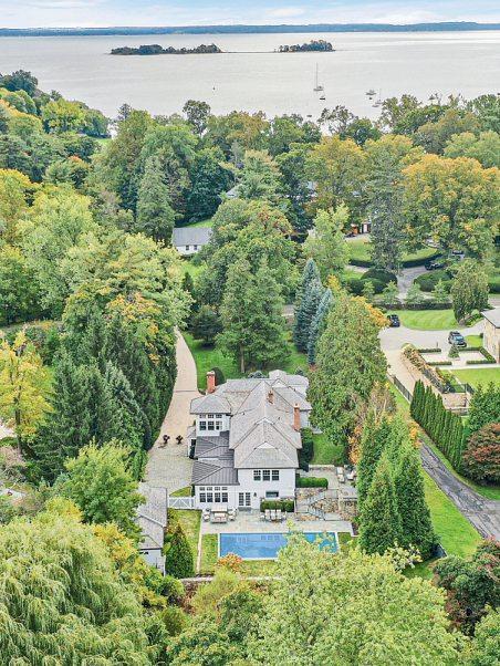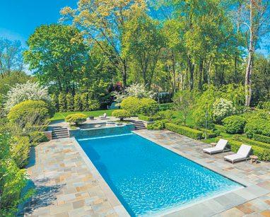 Pictured:Granoff Architects designed theseven-bedroom stone-and-clapboardGeorgianat4 Cherry BlossomLane— currently on themarketfor $8.95 million. The2.27-acre lot— whichhas awealthofamenities,including abar andlounge, gym, pool (inset above) andwinecellar/tastingroom—islistedbyRob Johnson aRealtor with BrownHarrisStevens.Photoscontributed