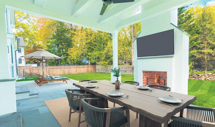 summerevenings, plus colder months.In addition to amazinglighting, there’salsoa wetbar,a bathroom,plusa large-screen TV andsound system—soit’smoreofan outdoor family room.”