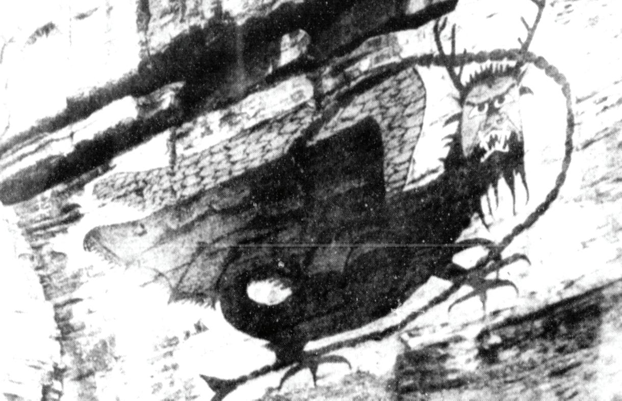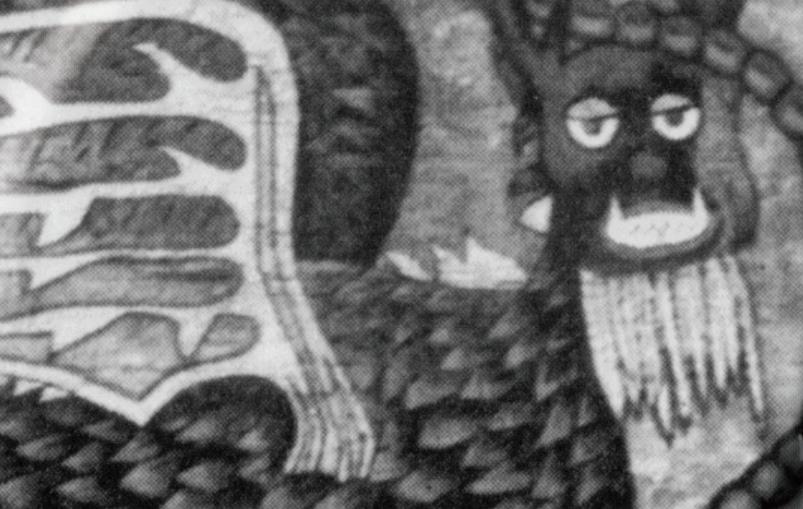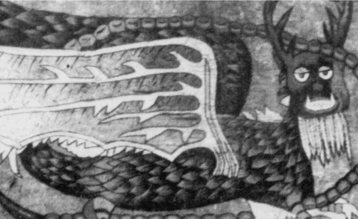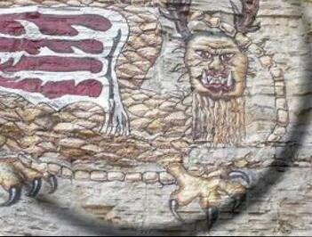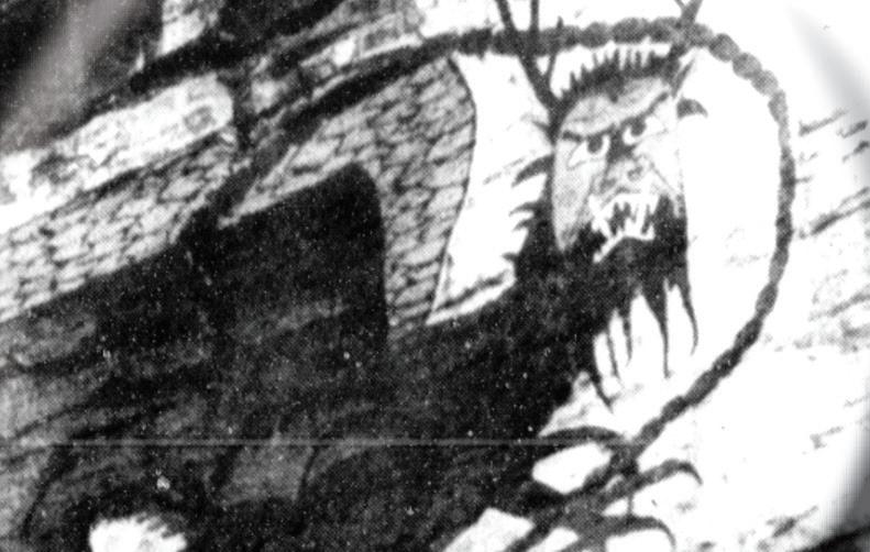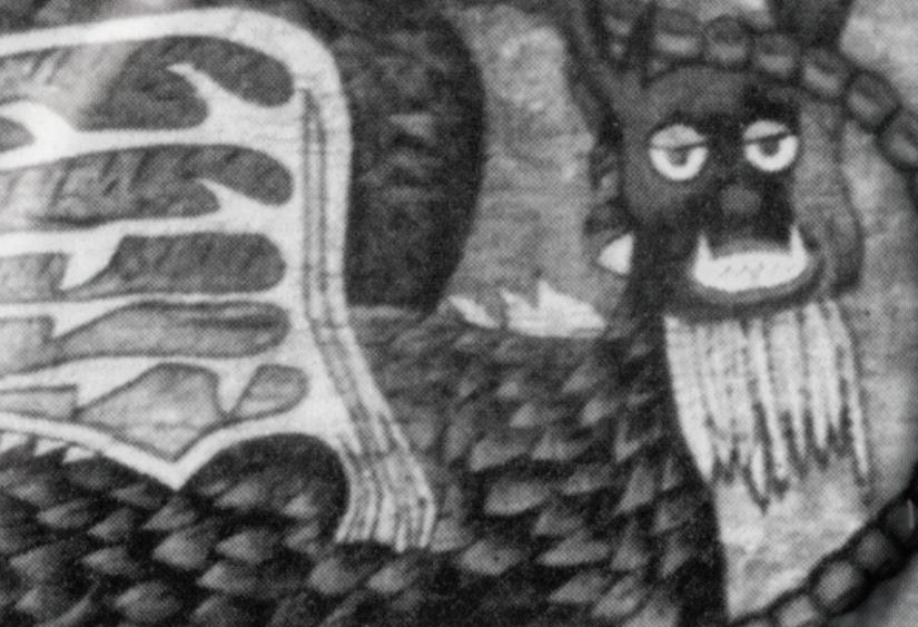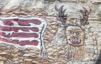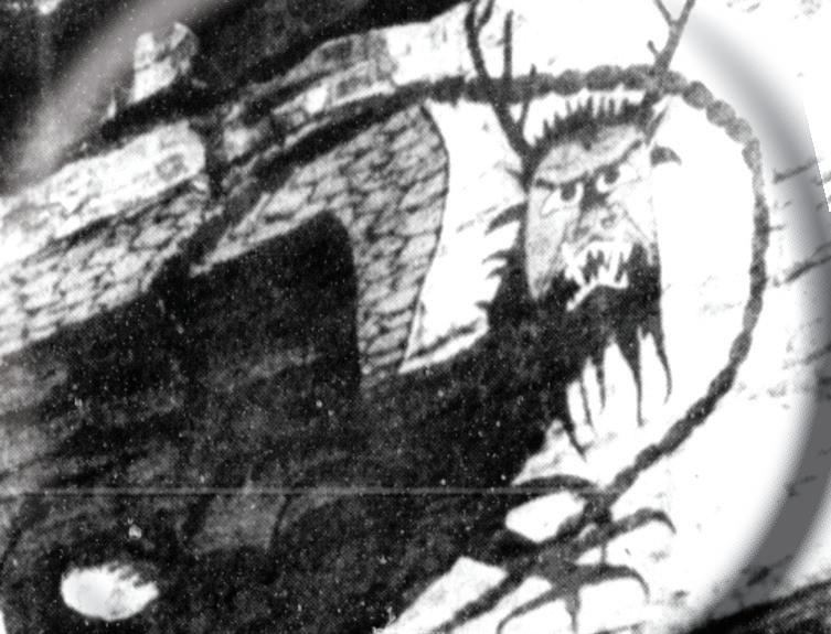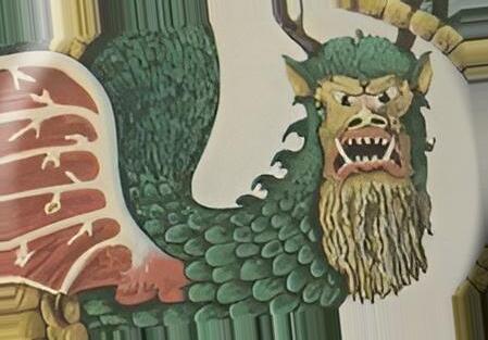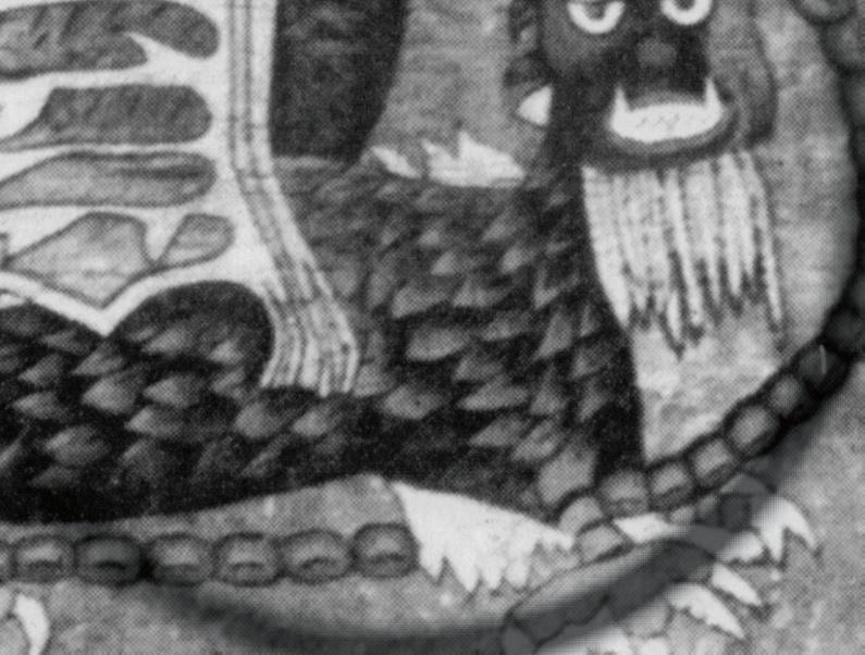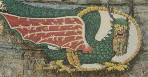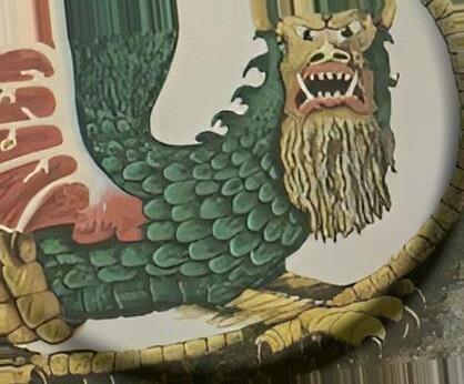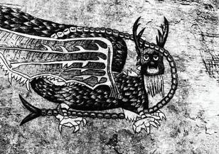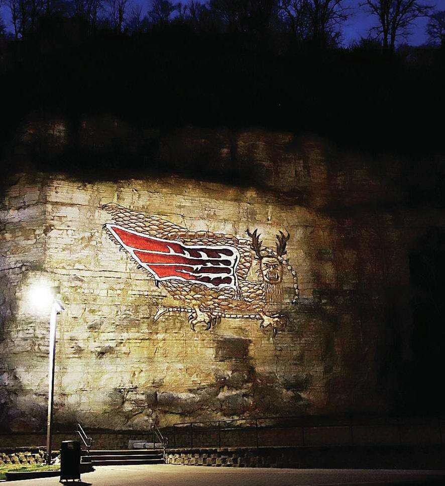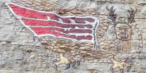 The Piasa, now depicted on limestone bluffs near Alton, looks like a dragon from long-ago Indigenous culture with wings, a beard, deer antlers, a scaled body and a long tail ending in a fork like a fi sh.