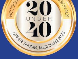 3. Why is your community a good place to live and work? I have grown up and lived in Harbor Beach for my whole life. Having the opportunity to work at my alma mater and raise my children in this community is something truly special. Harbor Beach is lled with incredibly caring people, and I am blessed that my children will experience the same kind of atmosphere that I had growing up. My husband also farms, and we are blessed to have such a strong community that supports farmers and the hard work that they put in each day.
