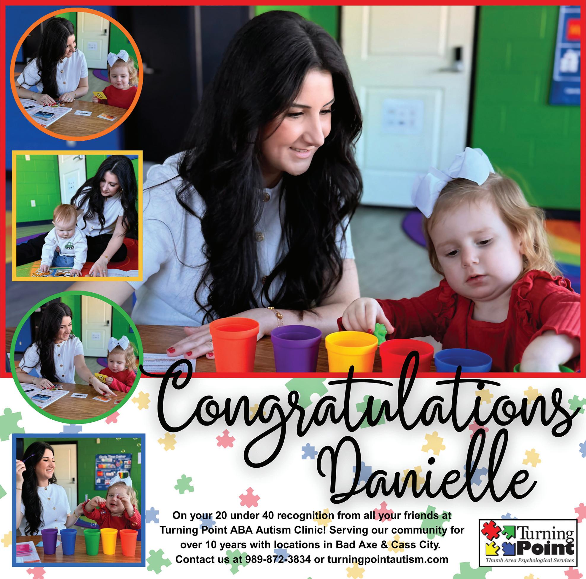 3. Why is your community a good place to live and work? Huron county is a wonderful place to live and work because it o ers a strong sense of connection and belonging. People tend to know and support one another, creating a close-knit caring environment. I feel that I am able to make a meaningful impact in the community through my work and extracurricular involvement.