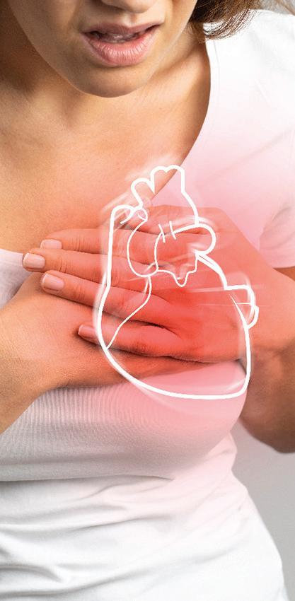 • Myocardial infarction (heart attack): A heart attack can produce different symptoms in men and women, so it’s best to treat any outof-the-ordinary signs with caution. Intense chest pressure or squeezing; pain spreading to arms, jaw, back, or stomach; shortness of breath; nausea; cold sweats, lightheadedness; fatigue; or back pain merit medical attention.