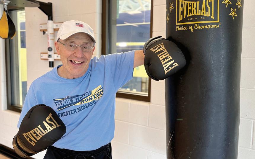 At the end of a Rock Steady Boxing class at Greater Midland Community Center, the participants – all battling Parkinson’s Disease or a similar condition – gather in a circle and put an arm in for a group cheer. On most days, one of those arms belongs to a smiling Jim Nigro (or “Bobcat” as he’s known in the group).