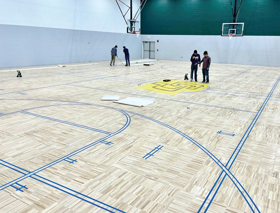 The new auxiliary gym oor at Comstock Park High School included 15,000 individual pieces installed over one month.