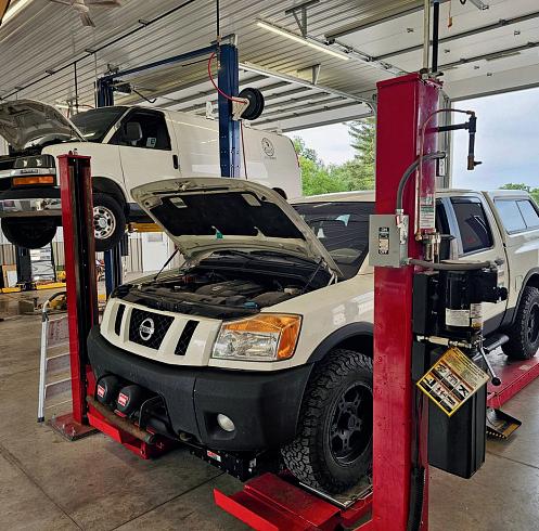 First in Line Services provides oil changes, brake services and batteries, and works on starters and other components. A full synthetic oil change is offered for $50 and includes a free tire rotation and courtesy services including a 20-30-point inspection.