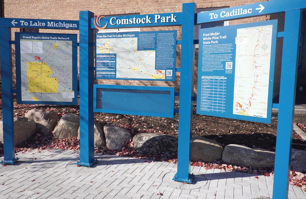 The Comstock Park Downtown Development Authority installed a kiosk with three maps of area trails near Mile 0 of the Fred Meijer White Pine Trail State Park.