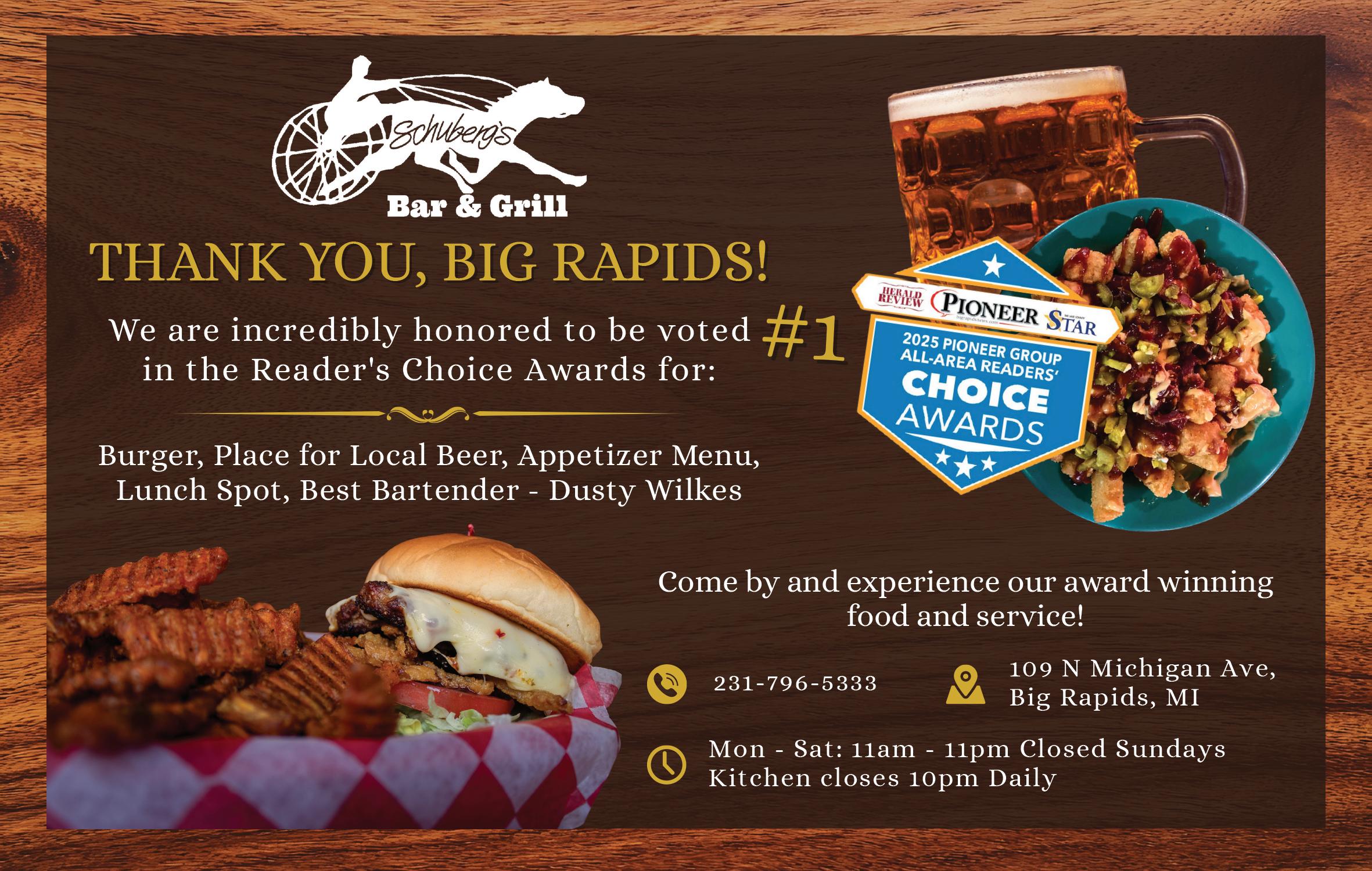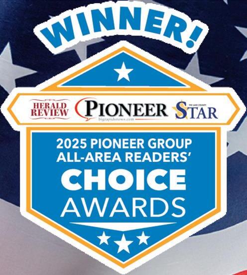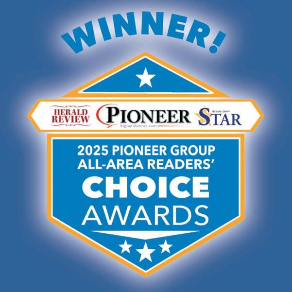 Congratulations to all of this year’s Pioneer, Herald Review and Lake County Star Readers’ Choice Awards winners. Being recognized by the people who live, work and shop here in West Michigan, is a meaningful honor — and a powerful reflection of the trust you’ve earned through quality, service and consistency. Your dedication helps set the standard for excellence in our community, and we’re proud to celebrate what you’ve built.