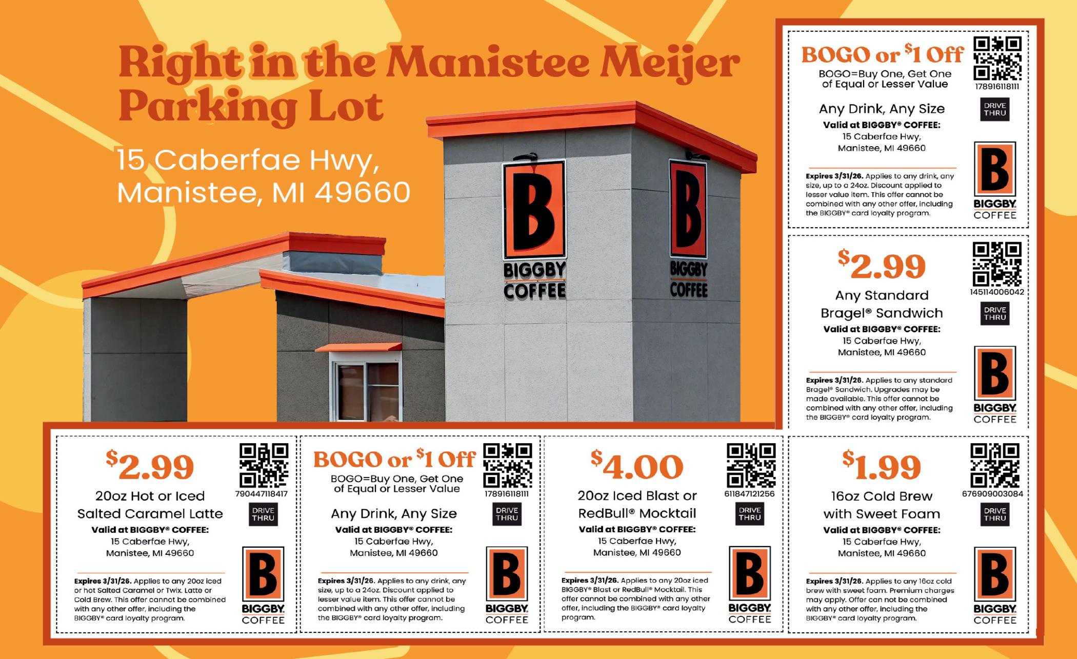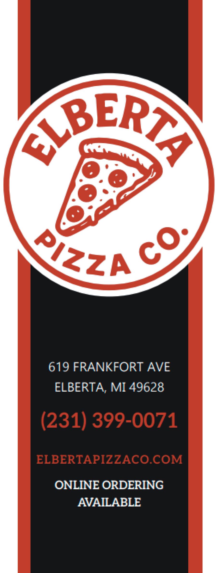 Elberta Special, Deluxe, Super Deluxe, White ‘N Cheesy, Car nivore, Hawaiian, BLT, Veggie, Chicken Bacon Ranch, BBQ Chicken, Chicken Pesto, Spicy Roni or Loaded Twice Baked Potato