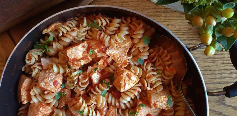 Heart-healthy recipe: Rustic salmon and tomato pasta (see p. 6)