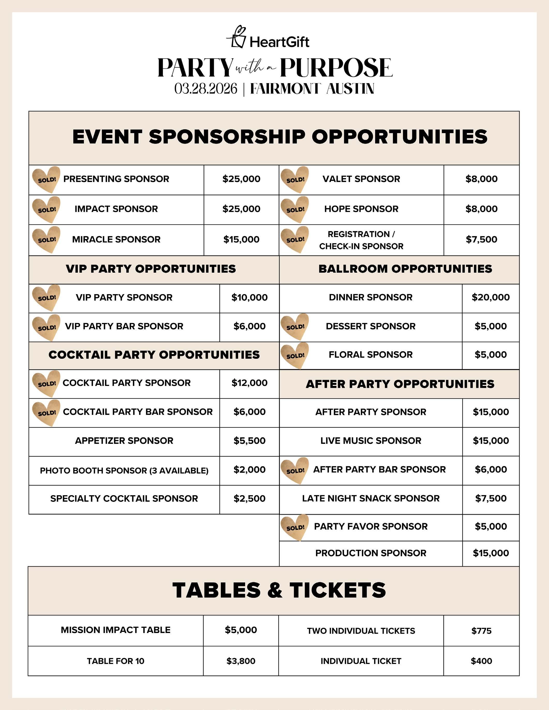 Highlight your brand as a hero for children among HeartGift’s diverse network of supporters at Party with a Purpose and beyond!