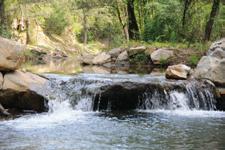 trucks forced to relay water from a hydrant and also pump water from a small creek down the hill from the property.