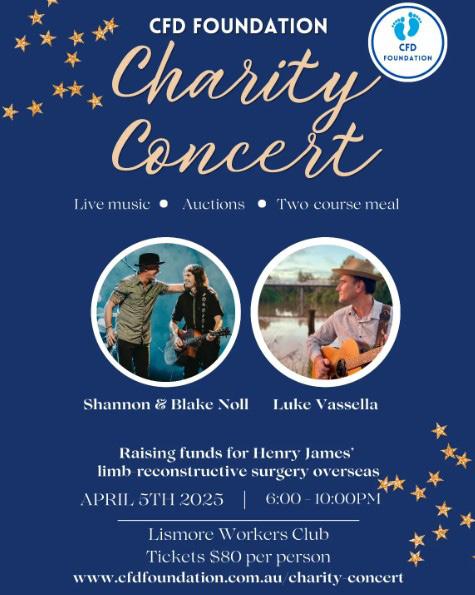 This concert for little Henry will be held at the Lismore Workers Club and will feature local sensations Shannon and Blake Noll and Luke Vassella.