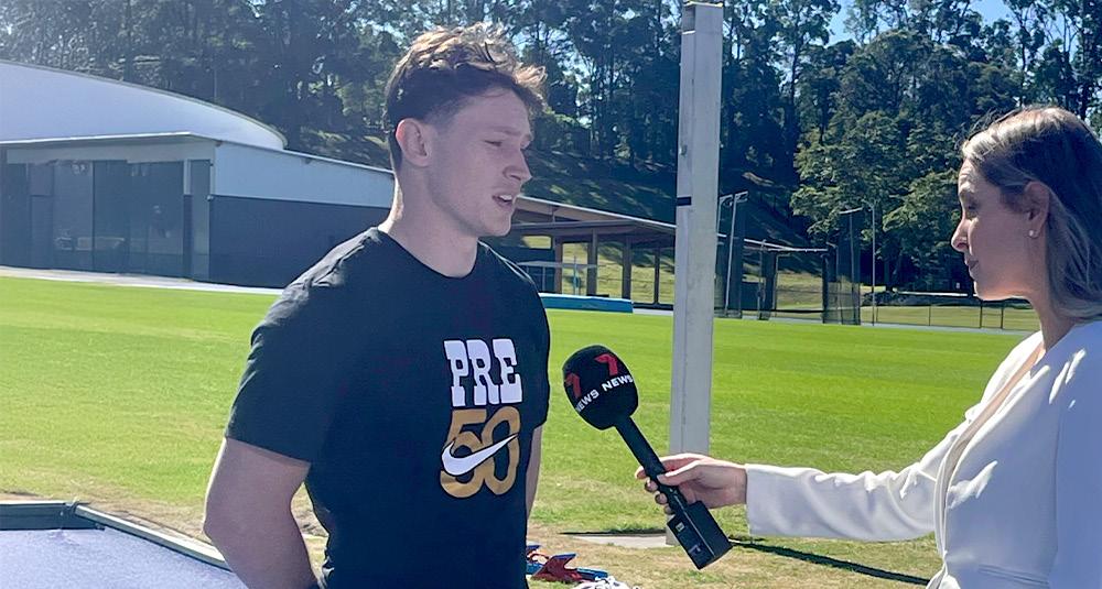 Cochrane’s kicking game came into full efect—frst grubbering into the ingoal where McLaughlin failed to clean up, allowing Michael Curnow to dive on the loose ball. Minutes later, he sent a pinpoint aerial kick to centre Stephen Prince, who soared above the pack to take the ball and score untouched.